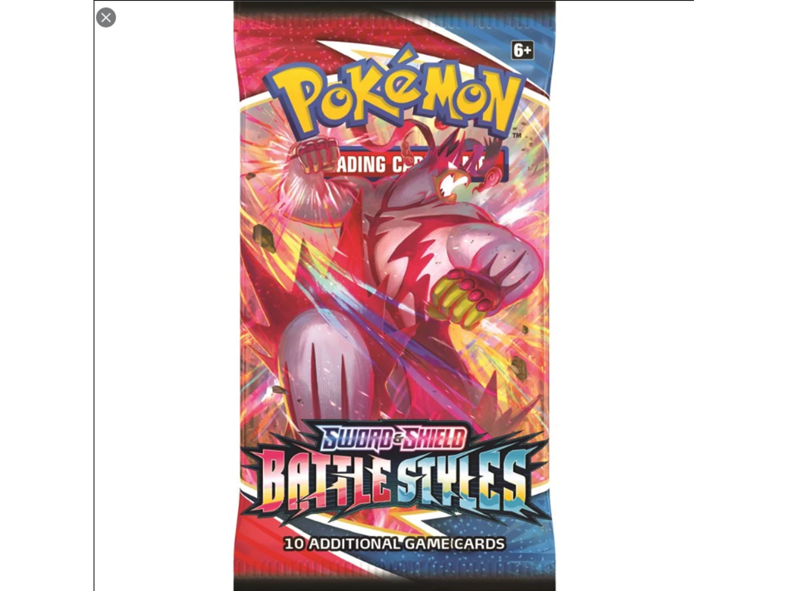 Pokémon Sword & Shield Battle Styles boosterpakke. Forsiderne varierer. Prisen er for 1 pakke.