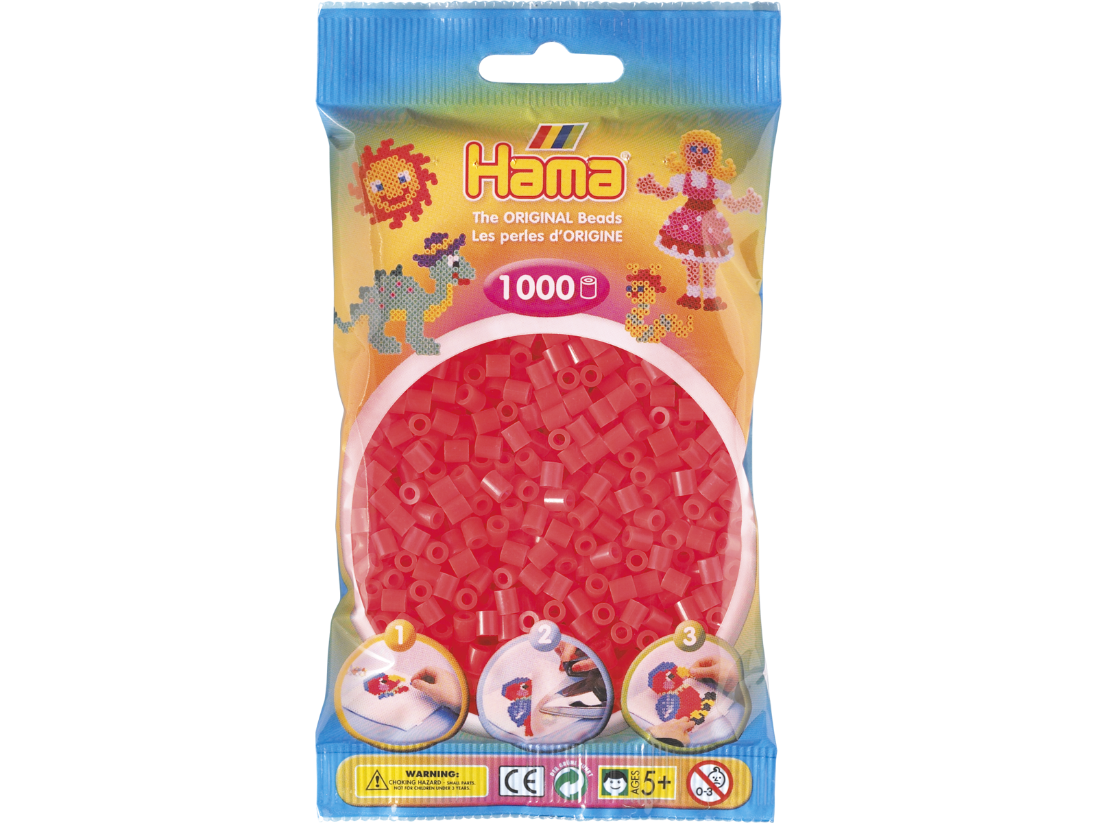 1000stk. Hama Midi neon rød 207-35