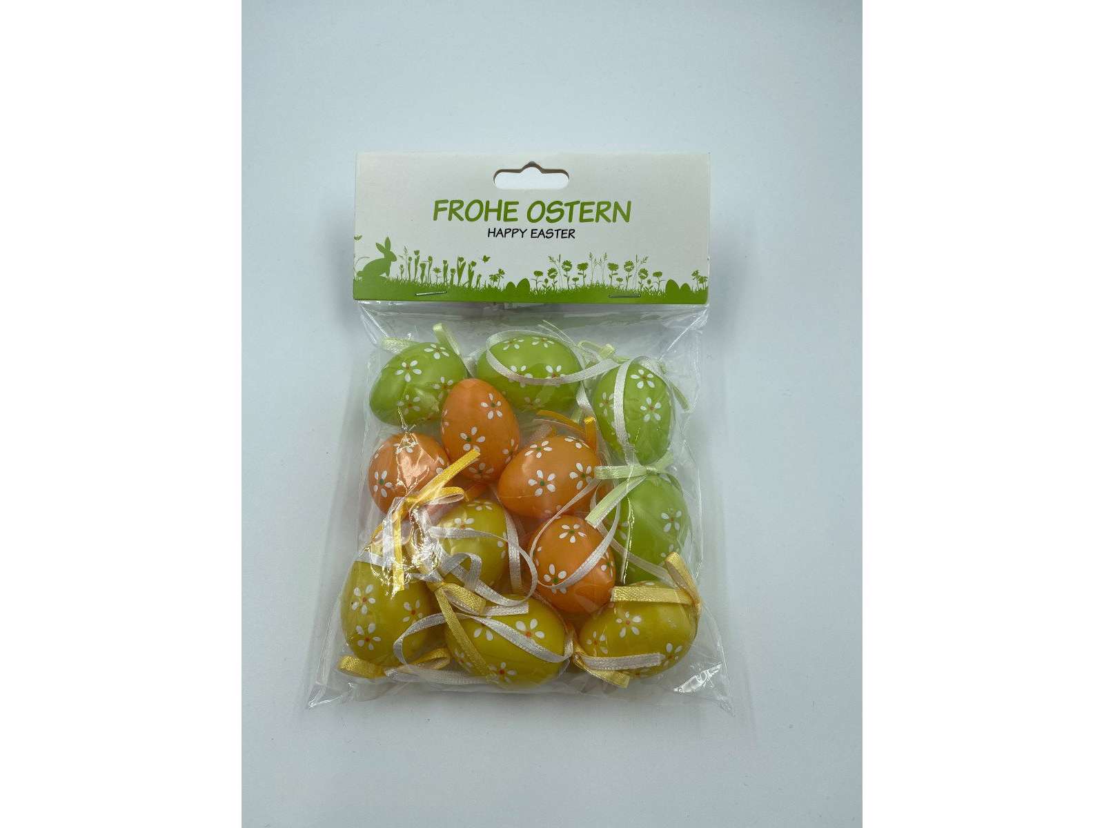 12 små påskeæg i plast. Lige til at pynte fint på en gren.