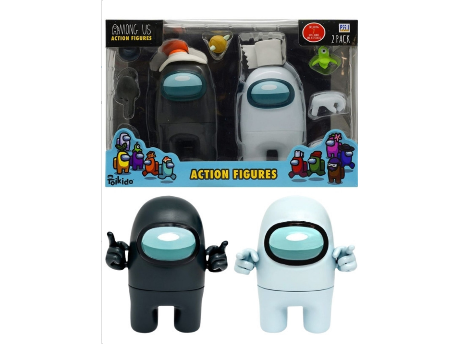 Det her er et par rigitig fede action figurer fra spillet Among Us.