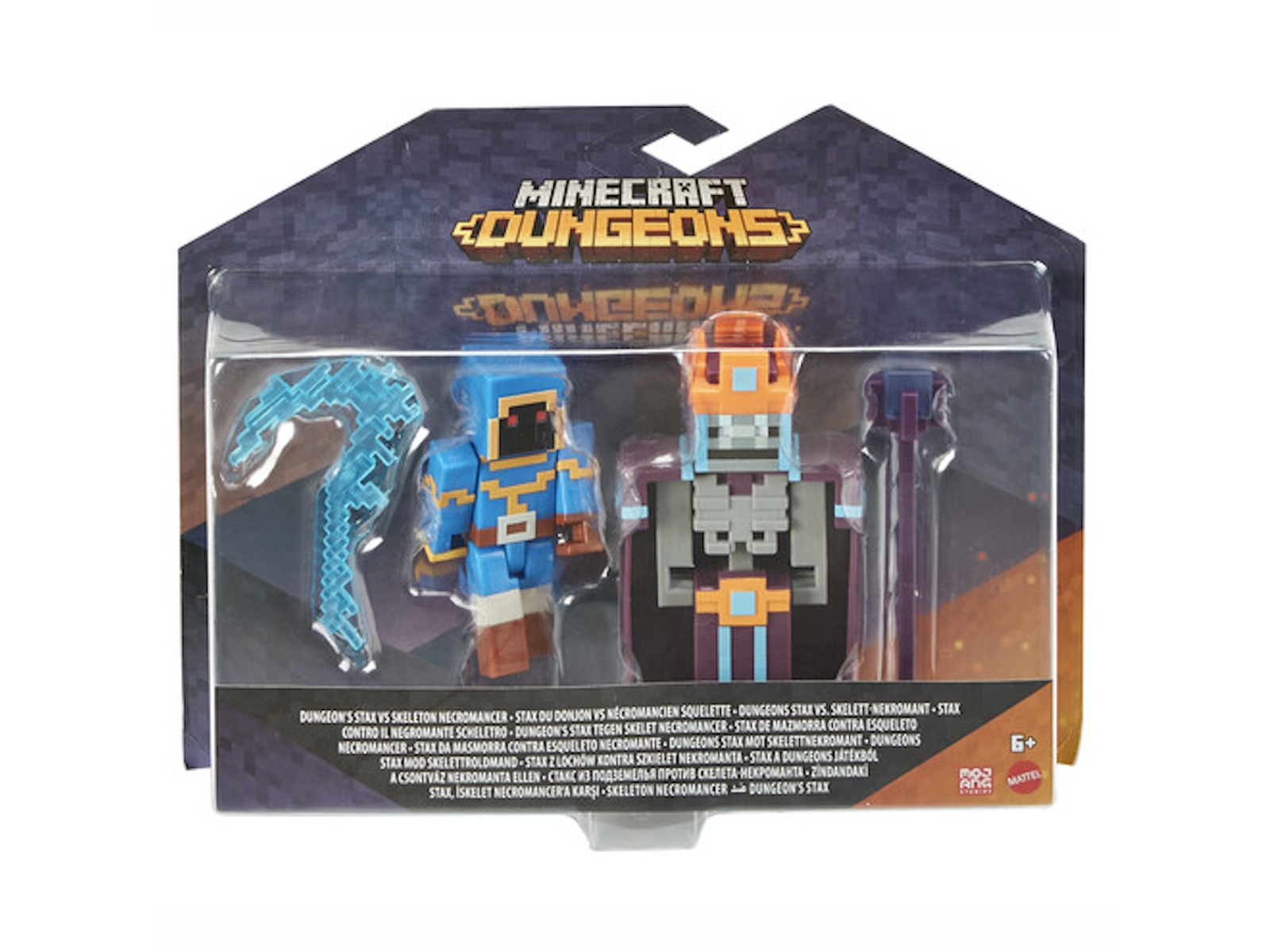 Pakken med Minecraft-karakterene Dungeon's Stax og Skeleton Necromancer, inkluderer også to våben.