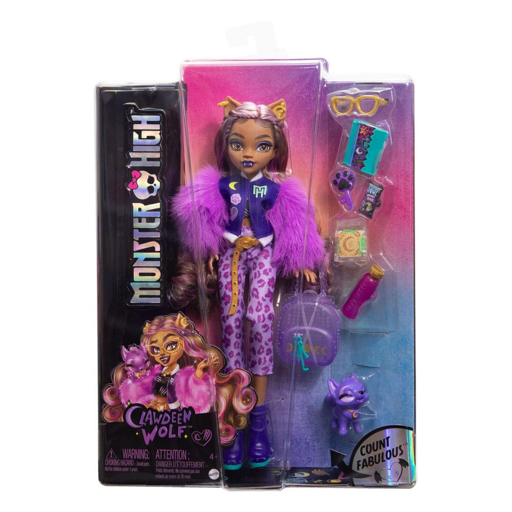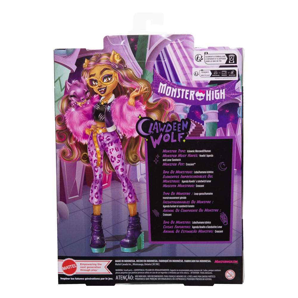 Monster High Clawdeen Wolf doll looks clawtastic in a fiercely fashionable outfit! She comes with her pet Crescent along with howl-worthy accessories.