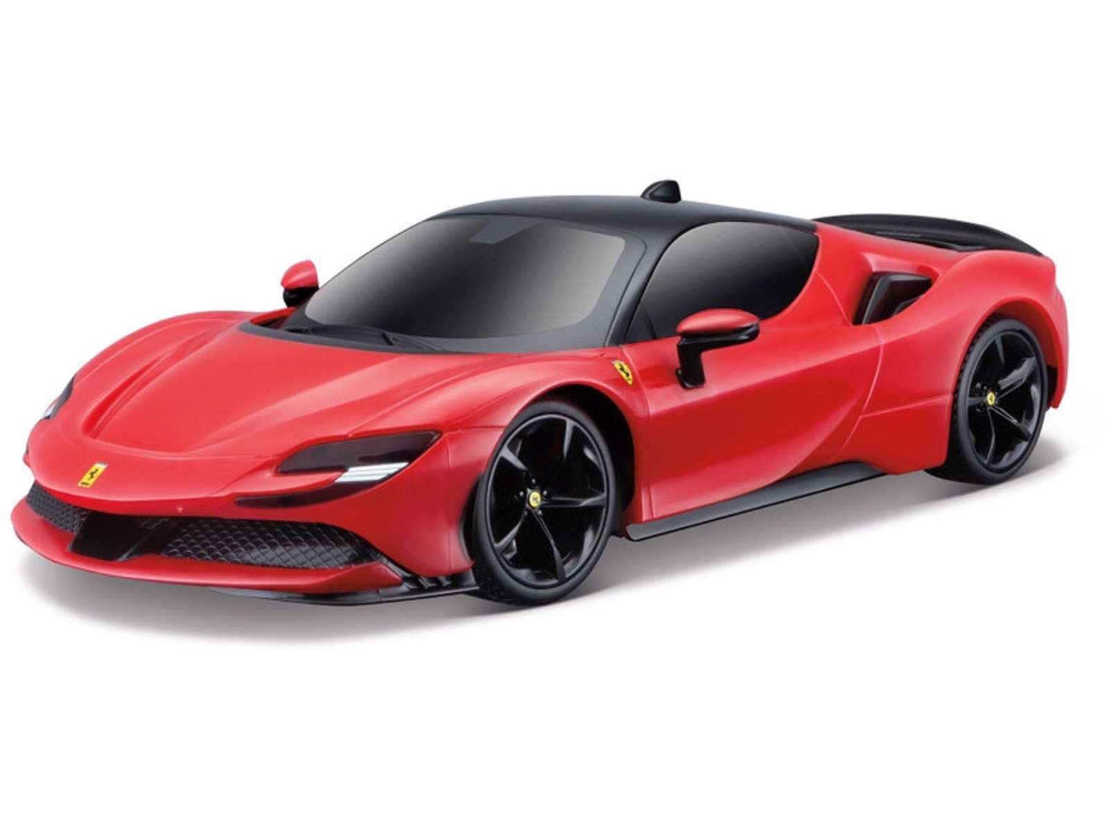 Skøn Ferrari legetøjsbil med rigtige motorlyde og lys i lygterne - for at aktivere funktionen skal man bare trykke på kølerhjelmen!