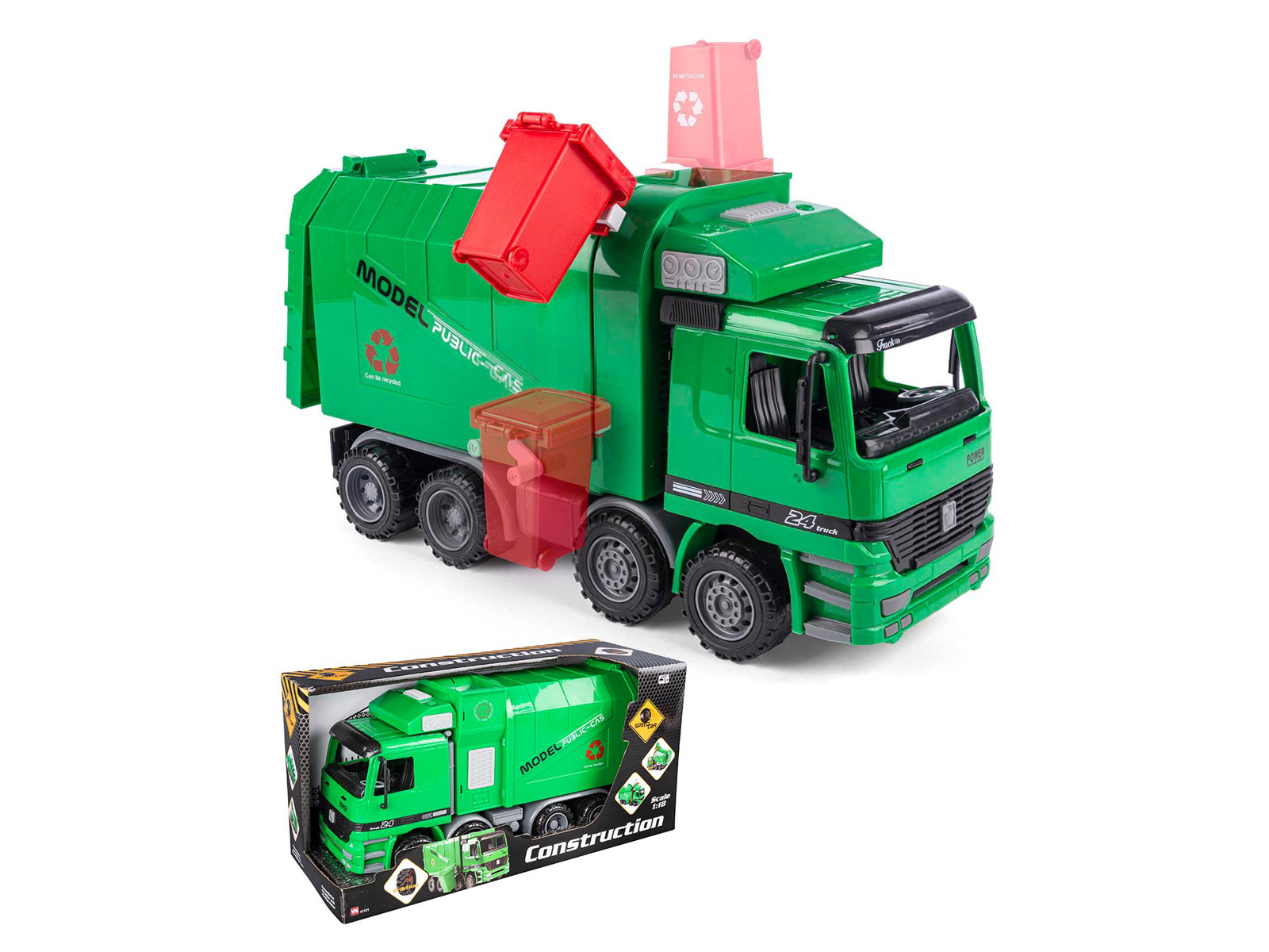 Skraldebil med friktionshjul og spand
