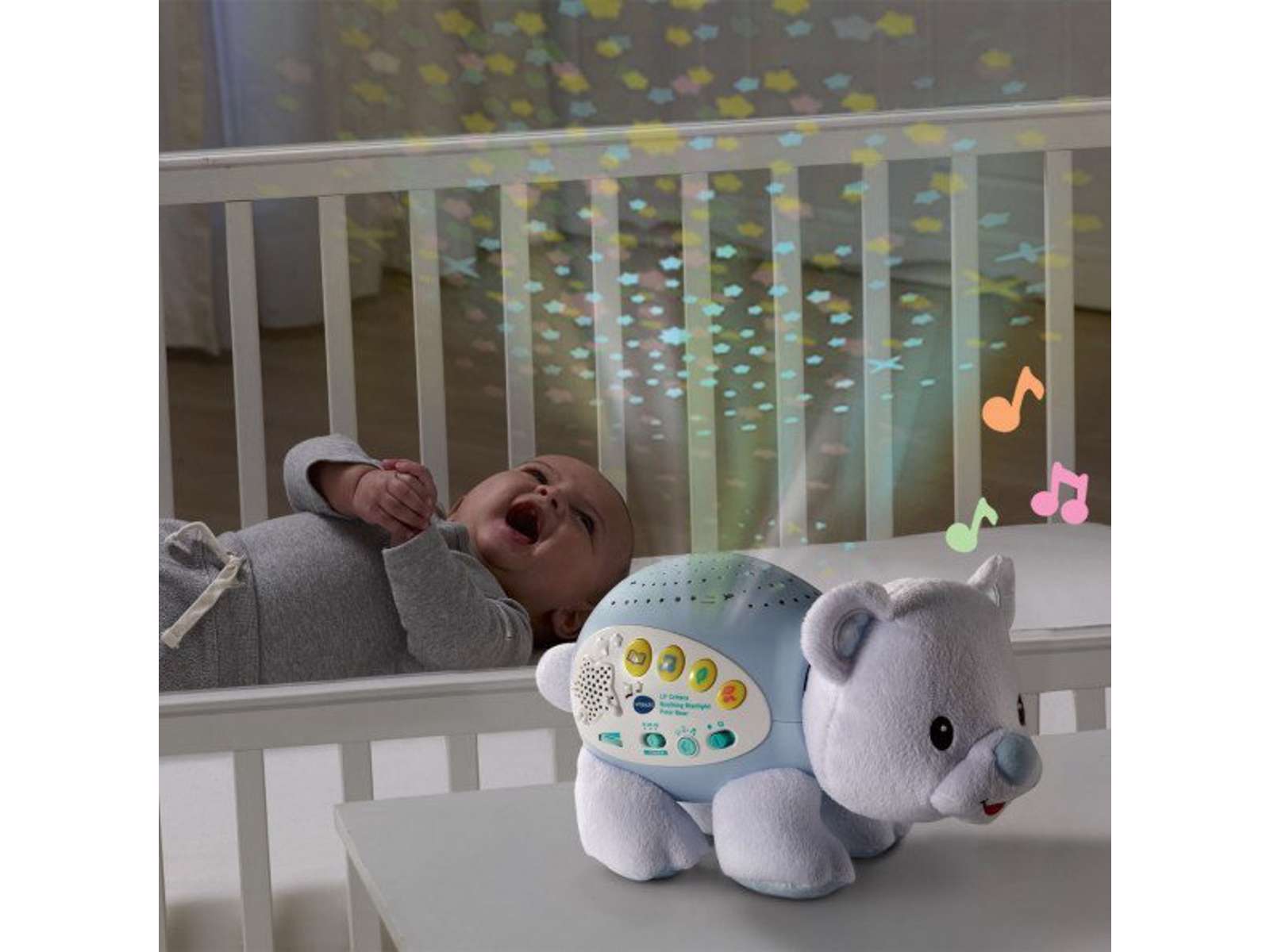 Denne søde isbjørn med lys og musik fra Vtech, spiller beroligende lyde/musik med henblik på at berolige dit barn ved sovetid. Når musikken spiller lyser isbjørn op og fire forskellige farver kan ses i loftet.