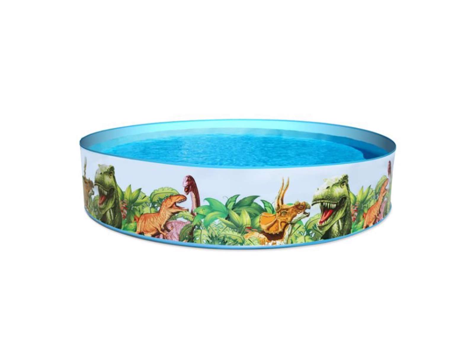 Sejt badebassin med dinosauere på siden.