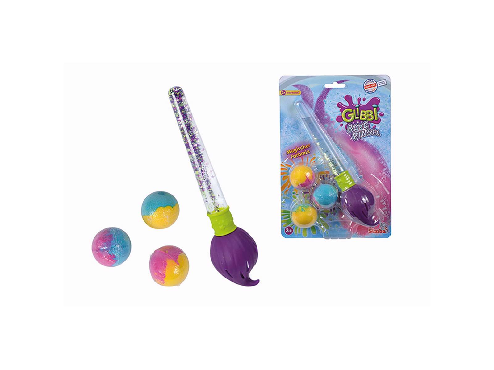 Her får du en sej glitterpensel med 3 seje badebomber, så du kan farve vandet i badet.
