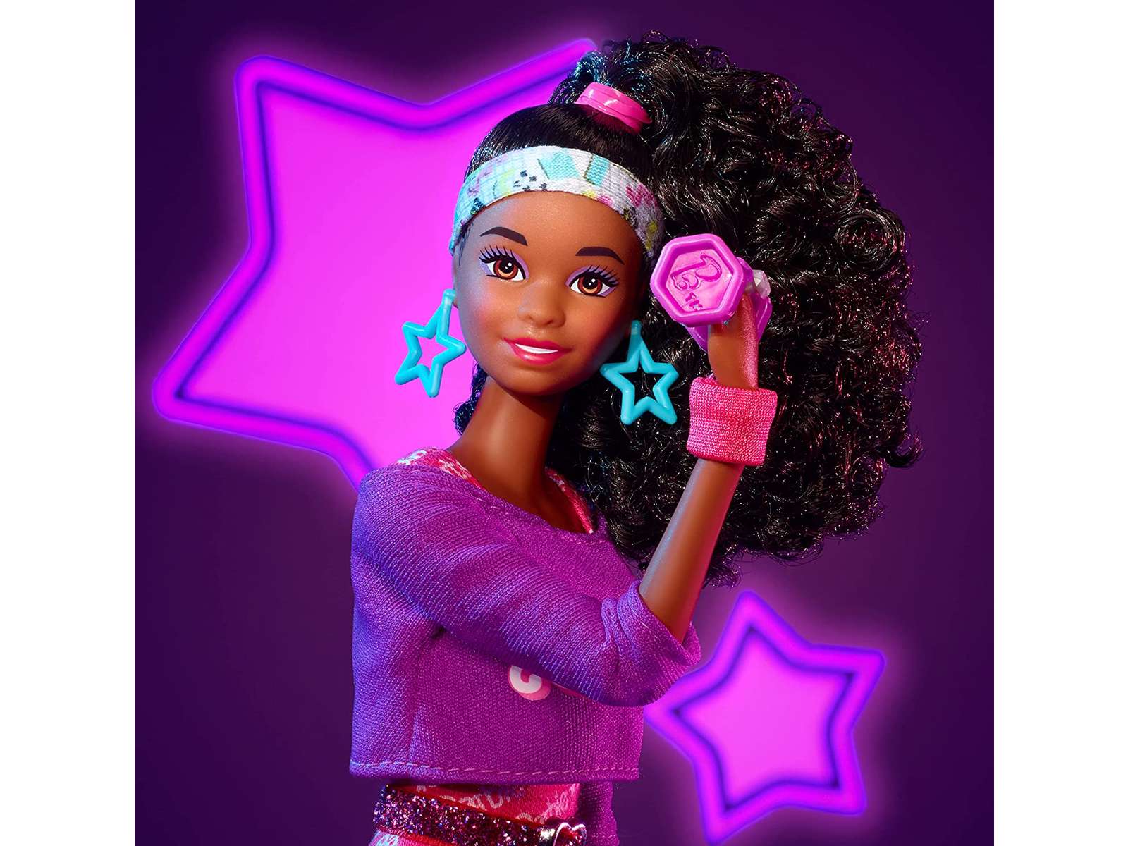 Barbie Rewind serien byder på Barbie dukker, som mor husker dem: Mattel har simpelthen taget alt det lækreste fra 80’erne og puttet det i denne fantastiske fashion dukke. Hun er klar til sin aerobics-time iklædt pink bodysuit og lyselilla croptop med vintage ‘Barbie’-logo, benvarmere og svedbånd i frotté. Håret er sat i en sidevendt hestehale og et glitrende bælte fuldender looket! Barbie Rewind dukken har bøjelige knæ, så hun faktisk kan posere, som om hun træner, og kommer i en lækker retro VHS-inspireret æske. Perfekt Barbie dukke til nostalgiske mødre og deres seje retro-børn!