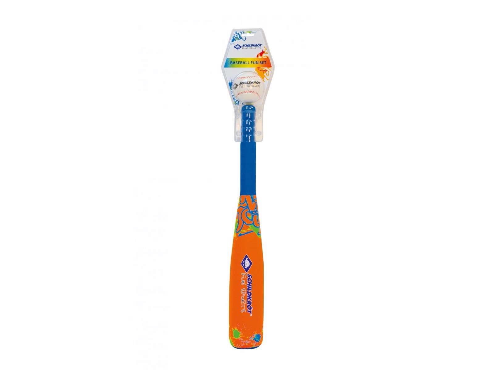 Sættet indeholder 1 bat (62 cm, 200g) og 1 blød baseball Ø 8,5 cm.