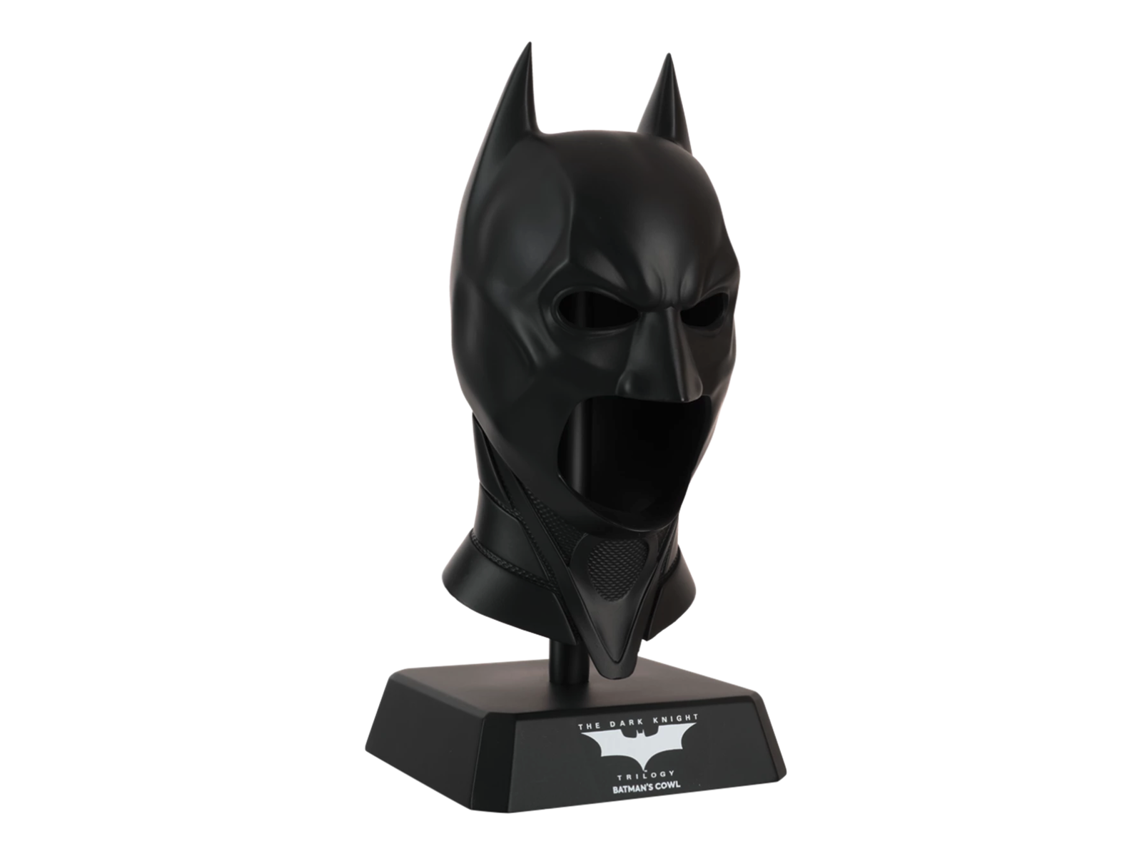 Batmans cowl gennemgik et redesign i Christopher Nolans ‘The Dark Knight’ (2008), efter at Bruce Wayne stødte på problemer med batsuit’ets mobilitet. Her er den genskabt som en yderst nøjagtig kopi af polyresin og omhyggeligt håndmalet ned til mindste detalje.
