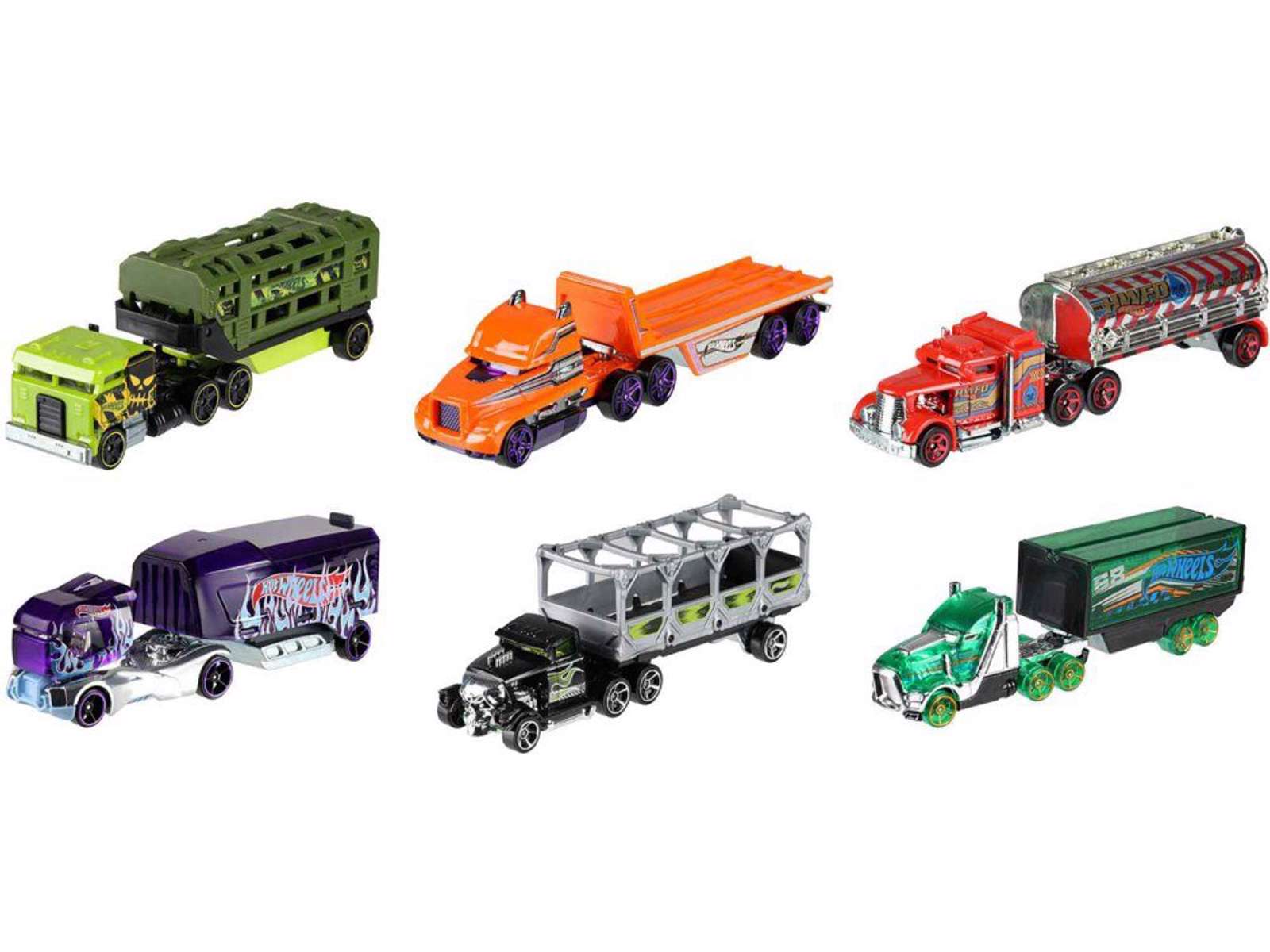 Top sej bil fra Hot Wheels med en forvogn og en hænger.