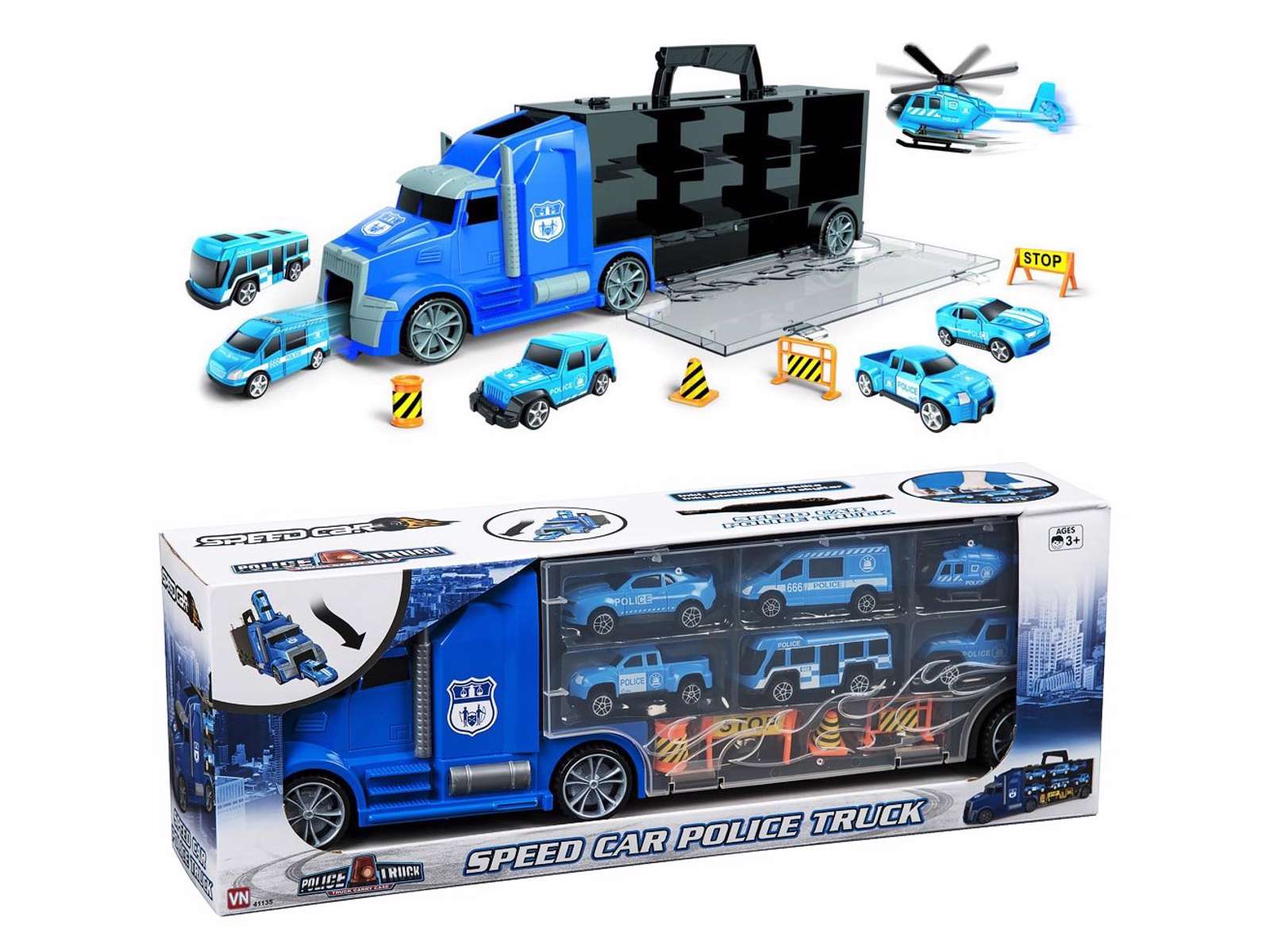 Politiautotransporter på 43 cm med 6 køretøjer og tilbehør fra Speedcar