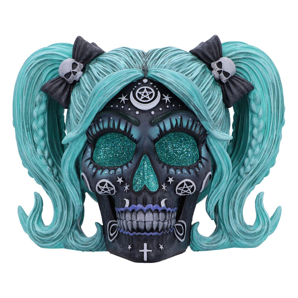 Introducing our captivating Drop Dead Gorgeous - Cute and Cosmic skull, a unique and enchanting fusion of mysticism, charm and darkness. Adorned with vibrant turquoise features and witchy patterns. Creating an atmosphere of curiosity and a connection to the unseen, this piece serves as a unique and eye-catching skull in any space. Cast in the finest resin before being expertly hand-painted, this Drop Dead Gorgeous - Cute and Cosmic skull will ignite your imagination and make the ideal statement where ever you choose to display it.