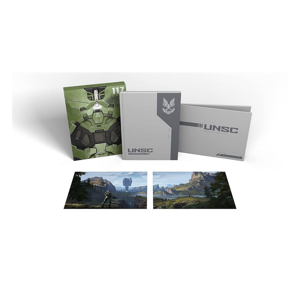 Take home a piece of the Master Chief's Mjolnir Mark VI Powered Assault Armor in the Art of Halo Infinite's Deluxe Edition! The chest-plate slipcase holds the Art of Halo Infinite hard cover with an exclusive new cover that any member of the United Nation Space Command would find up to spec. Also contained within is a UNSC portfolio with landscape art on museum quality paper of the Master Chief enjoying a peaceful moment on the Halo Array
