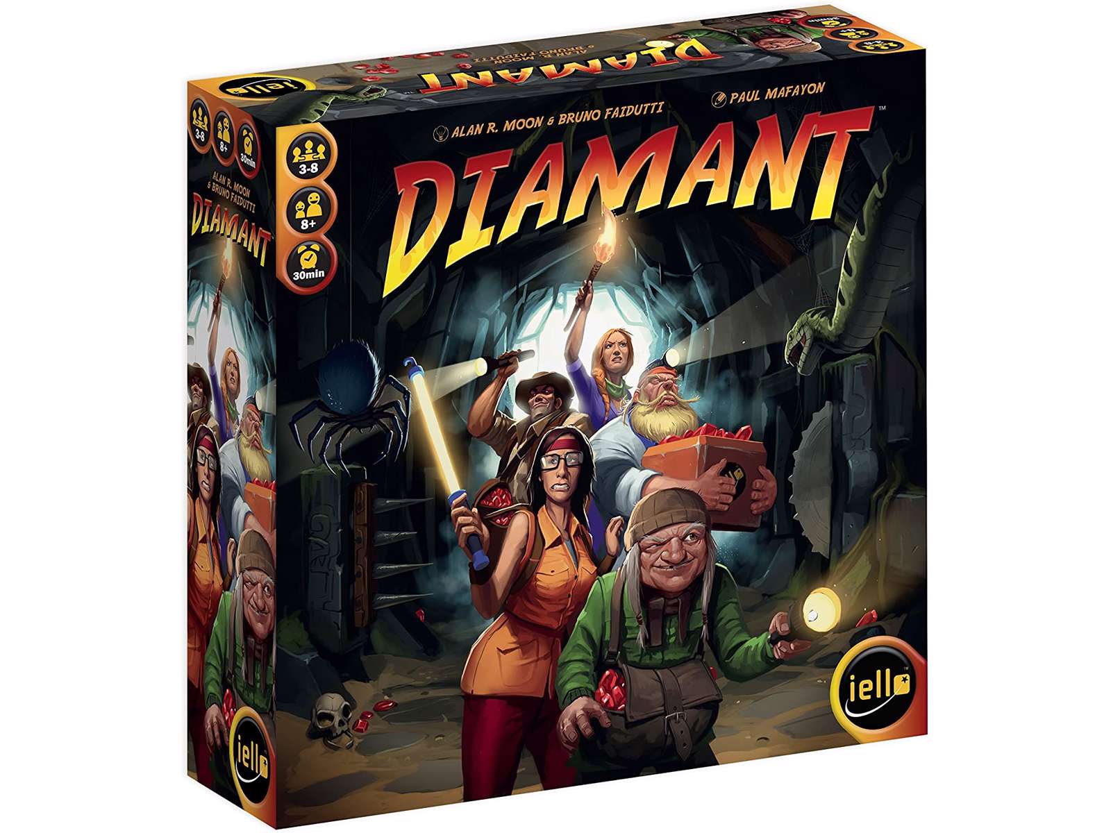 Dette spændende brætspil byder på huleudforskning og diamantjagt. I skal passe på, for hulesystemet er stort og fyldt med lumske fælder og andre farer, der lurer i mørket! Den spiller, der til sidst har samlet flest diamanter i sin skattekiste, har vundet.