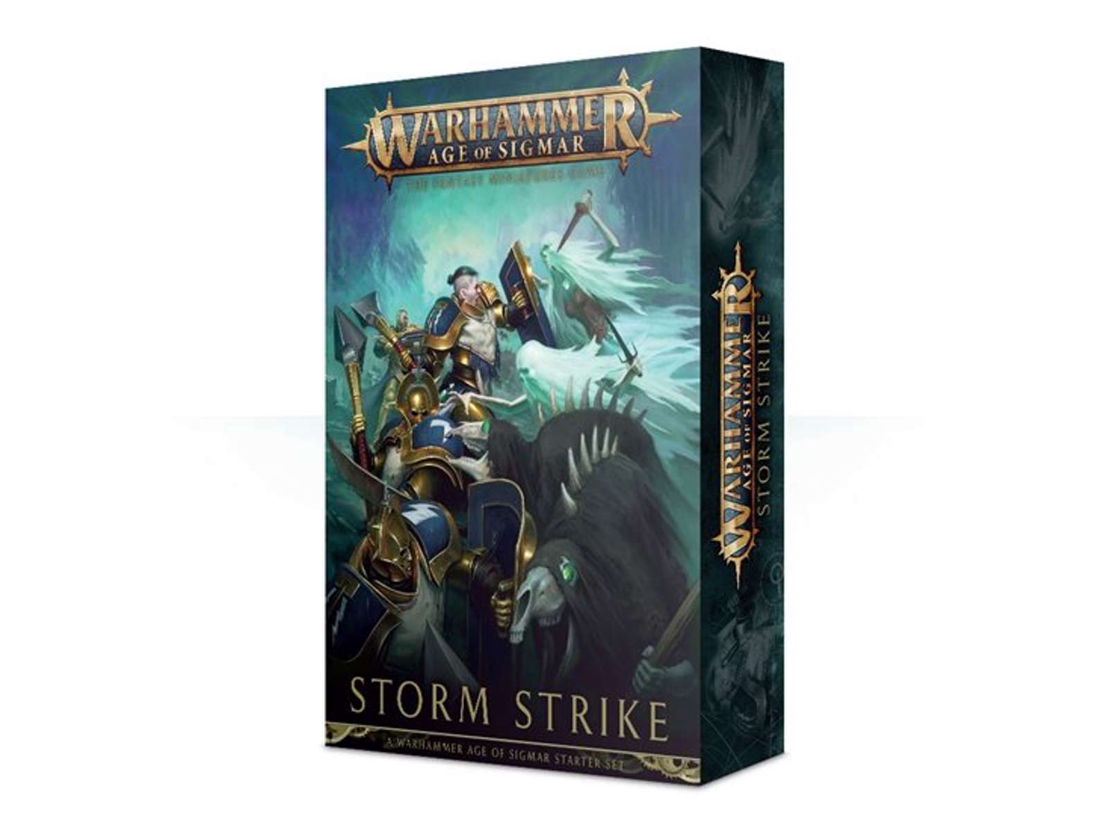 Dette sæt kommer med en 80 siders starter bog (engelsk), en 16 siders regelbog, 9 wallscroll kort, en terning pakke, en længdemåler, en spillemåtte. Udover tilbehør kommer den med 2 figur herre, Stormcast Eternals som er støbt i guldfarve og Nighthaunters støbt i grøn.