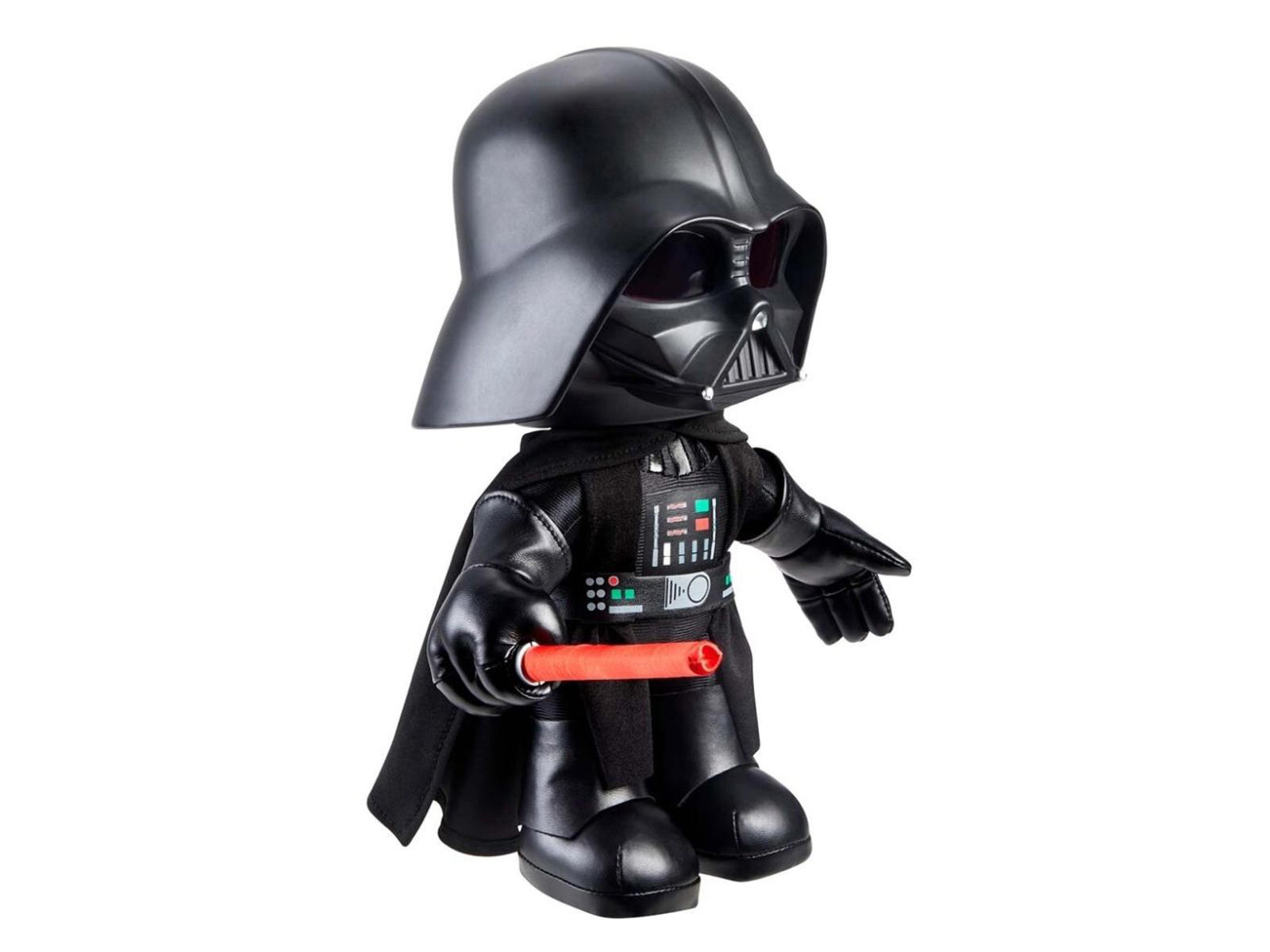 Star Wars™-fans kan slutte sig til den mørke side med Darth Vader™-plysfiguren med stemmeforvrænger og en lysende lightsaber™ for at fejre den onde Sith Lord™, der medvirker i Obi-Wan Kenobi™-serien på Disney+. Tryk den bløde dukkes hånd for at tænde hans røde lyssværd og aktivere stemmeforvrængeren. Når det er tid til at give ordrer til imperiets tropper, vil stemmeforvrængeren forvandle enhver stemme til en Vader-lignende befaling. Denne superbløde version af galaksens mest frygtede skurk er ca. 28 cm høj og har et ikonisk look, der er designet med tekstil af høj kvalitet og en detaljeret plastikhjelm, så den er autentisk at se på og røre ved. Darth Vader™-plysfiguren er en fantastisk gave til fans og samlere i alle aldre. Farver og mønstre kan afvige fra det viste. Fra 3 år. Batterier (3xLR44). inkl