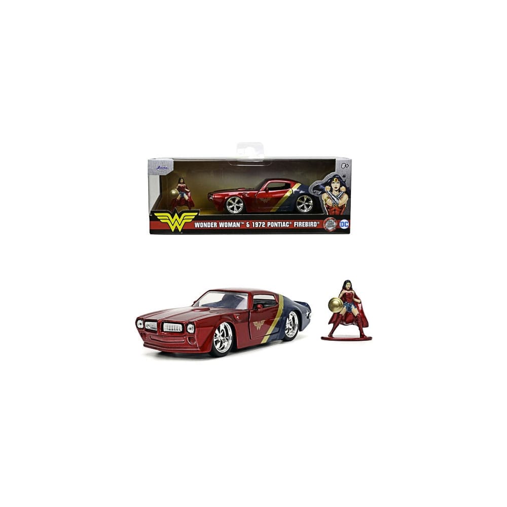 This display contains 6 officially licensed 1/32 scale diecast models. Each model comes in a window box. Including 7 cm figure made of metal in each package. Content: - 6 x Wonder Woman & 1972 Pontiac Fireb.