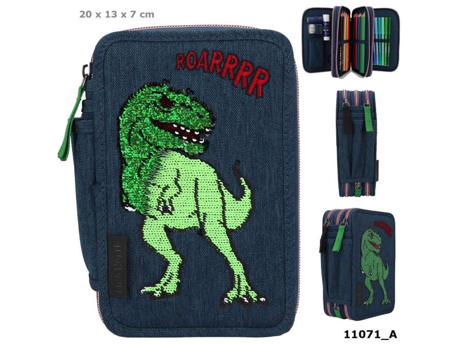 Penalhuset har en flot dino på forsiden med vendbare palietter.