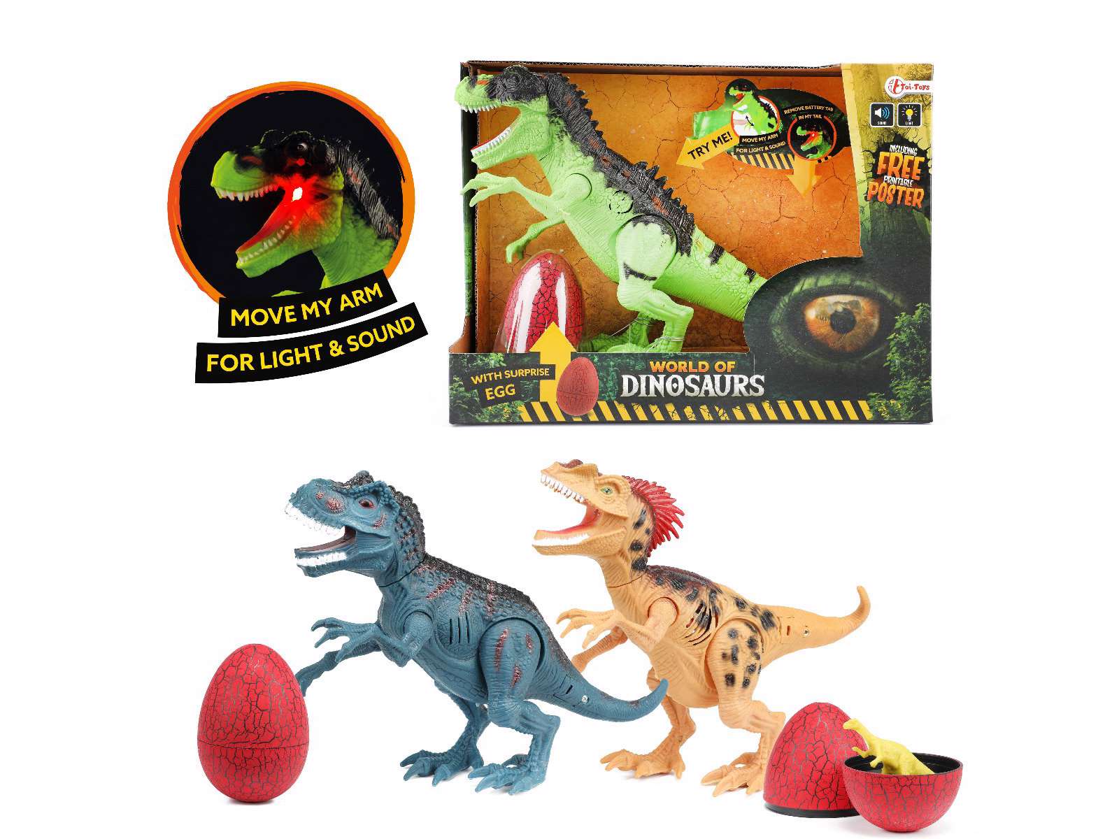 Dinosaur med lys og lyd og æg