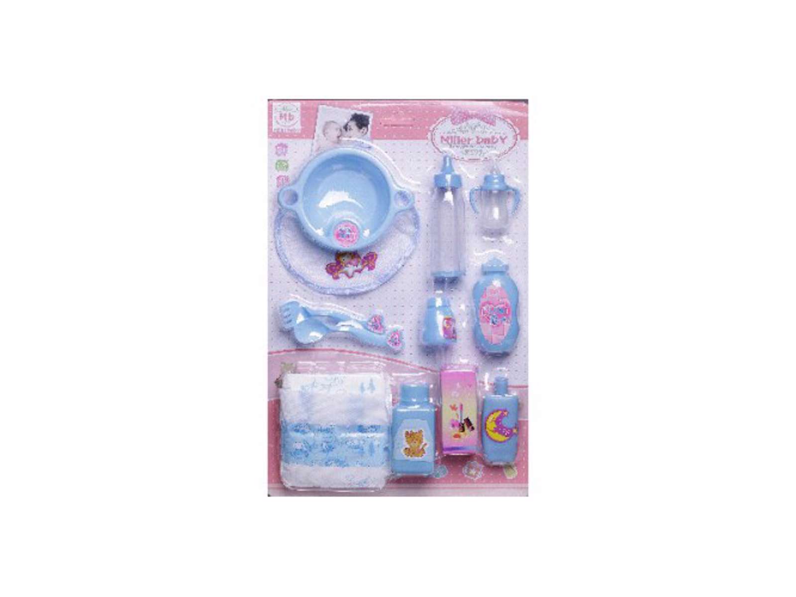 Så skal babydukken mades og pusles om med dette tilbehørssæt i blåt.