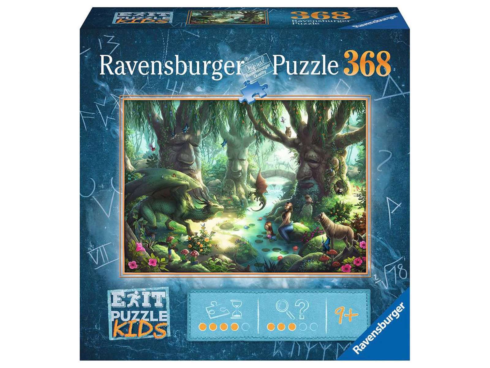 Exit Puzzle Kids fra Ravensburger er en spændende blanding mellem det klassiske puslespil og elementer af escape-room-spil. Puslespillet 'Magic Forest' er på 368 brikker og flot illustreret, men derudover indeholder det også en spændende historie og 6 gåder, som er gemt inde i puslespillets billede, og derfor først kan ses, når puslespillet er lagt. Saml puslespillet, løs gåderne og flygt!