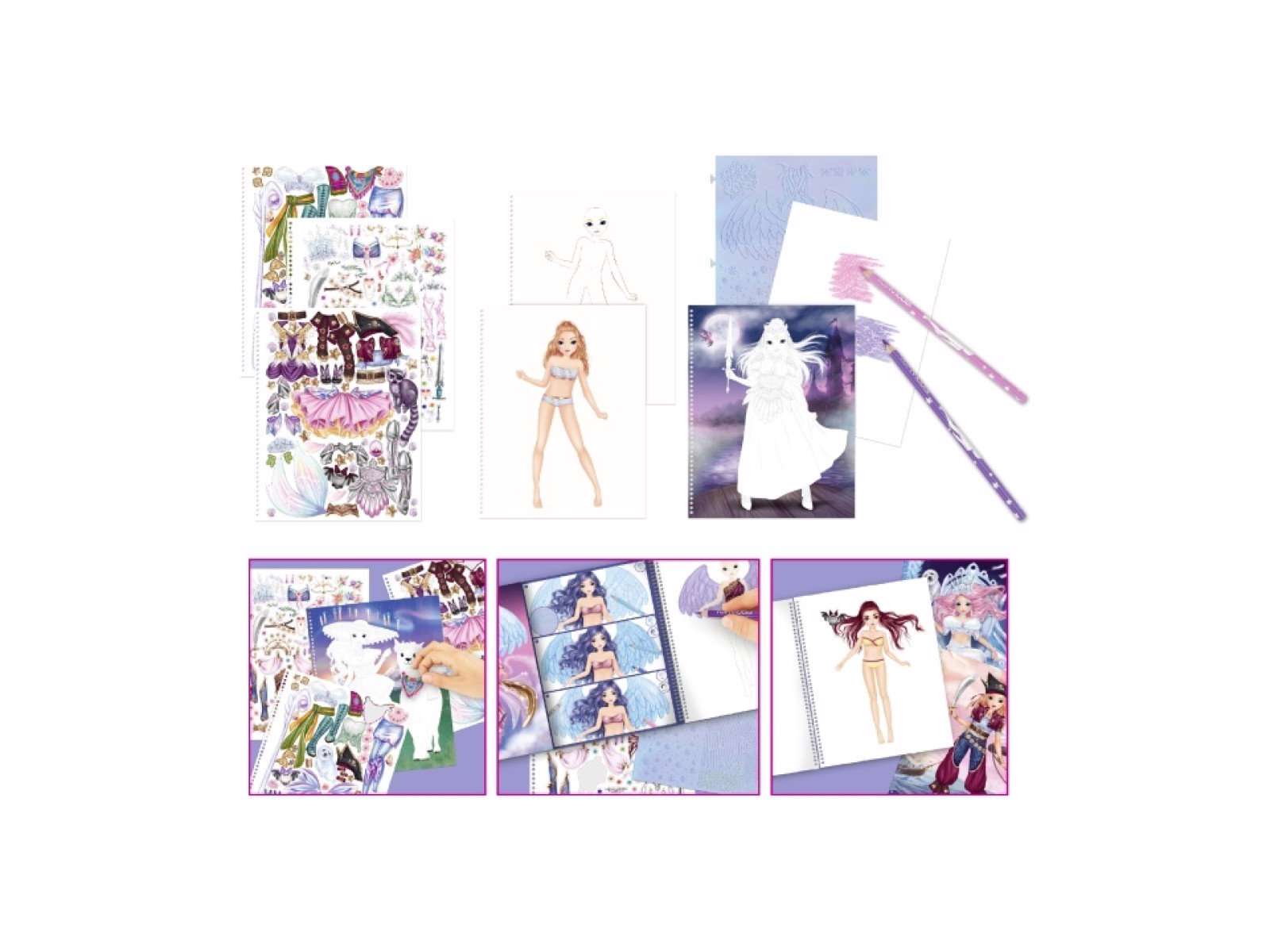 Fantastisk designbog med søde alfer, feer, havfruer og mere. Indeni kan du farvelægge de smukke figurer, og lave dine egne designs med de medfølgende klistermærker.