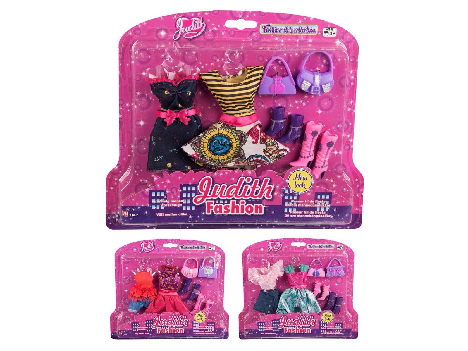 Sæt med tøj og tilbehør til Judithdukker - perfekt til børn som godt kan lide at style og kæde deres Judithdukker på.