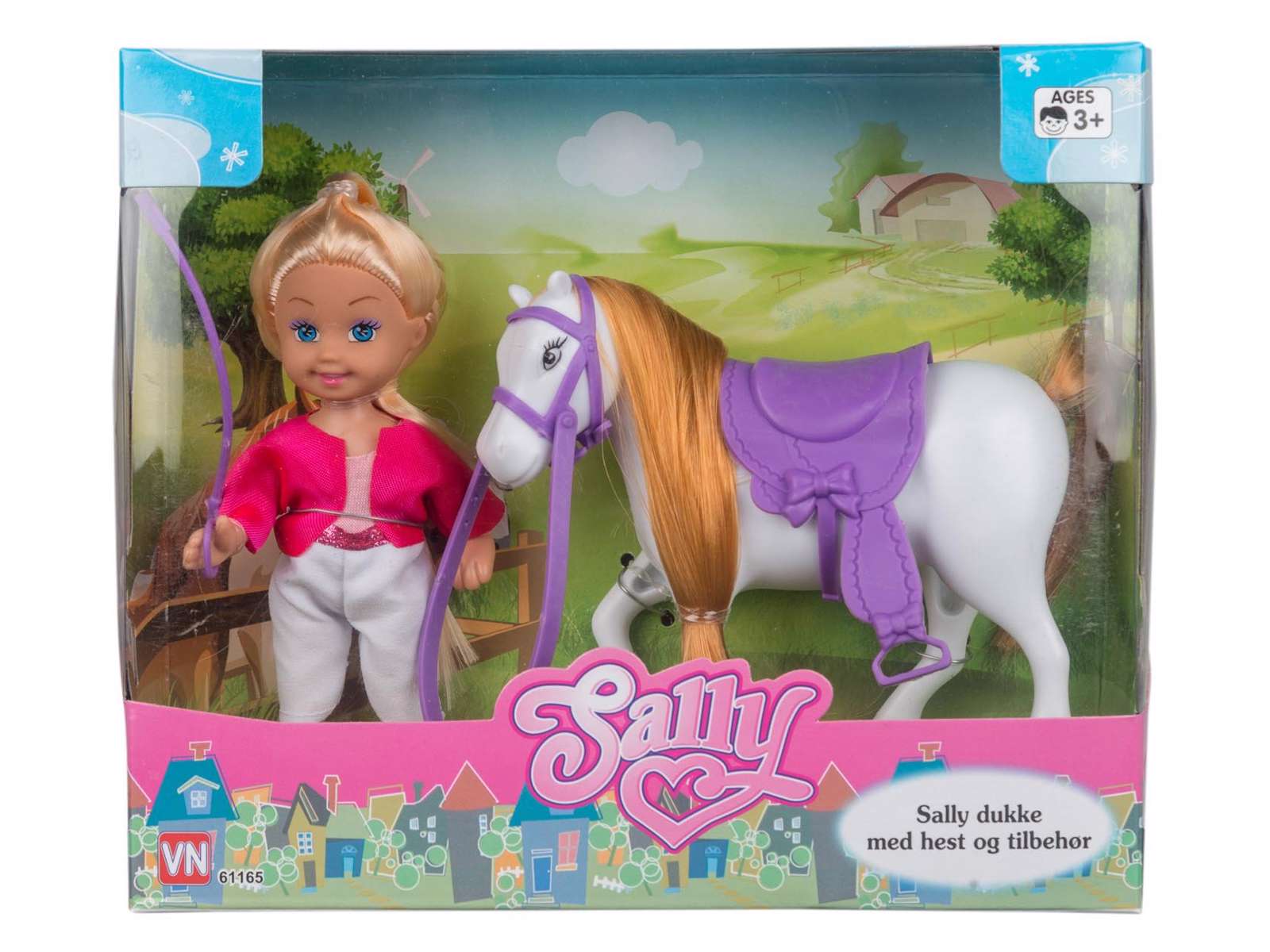 Sally dukke med pony og ridepisk. Anbefales fra 3 år.
