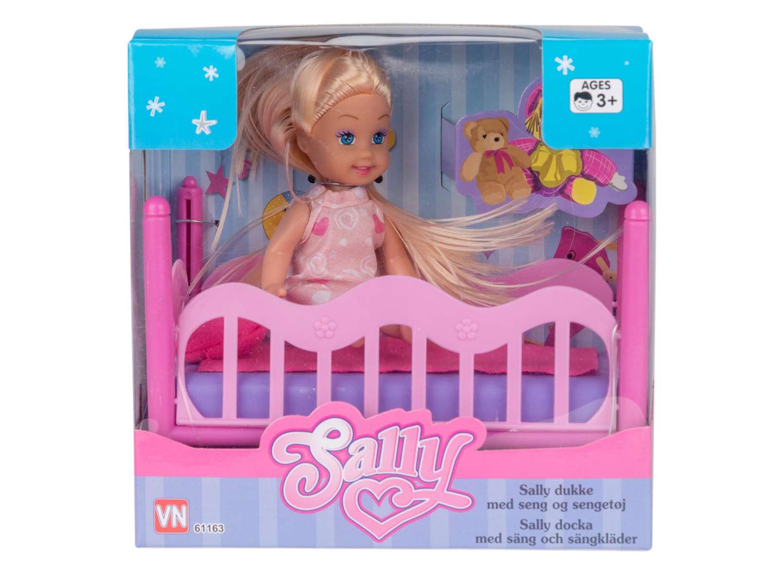 Sally dukke med tremmeseng, nattøj og sengetøj. Anbefales fra 3 år.