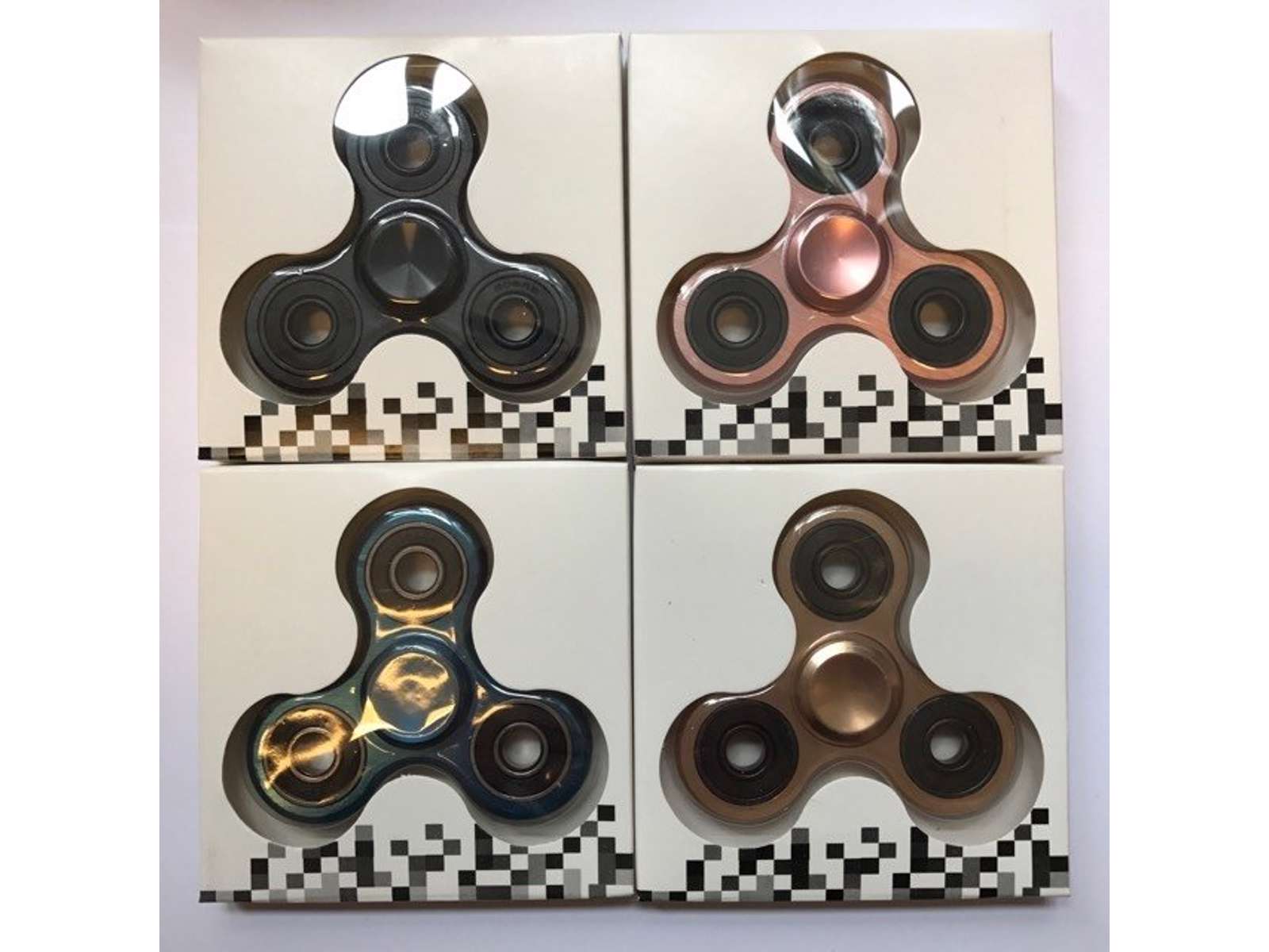 Sej spinner i metal med metal kuglelejer. Vores spinners måler 8x8x0,5 cm og kommer i flere forskellige farver. Det er ikke muligt at vælge farve online.