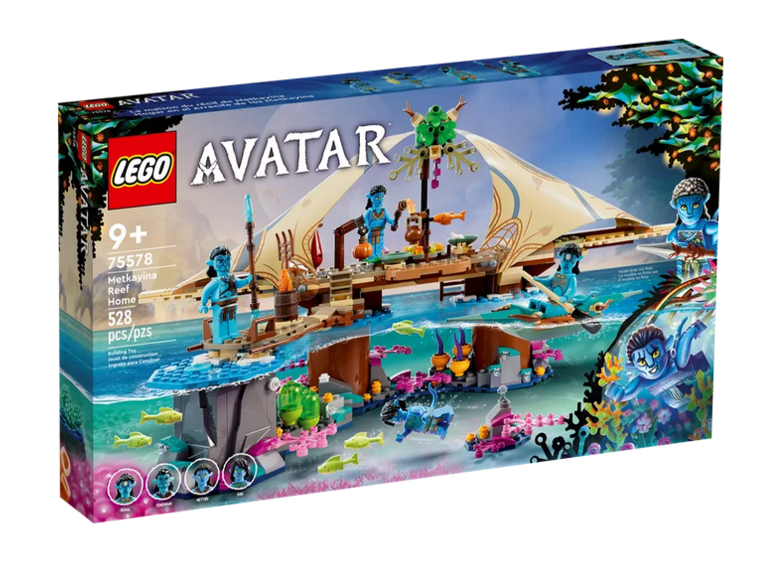 LEGO® Avatar legesættet Metkayina-hjem ved revet (75578) vil sætte gang i enhver Avatar-entusiasts fantasi. Sættet forestiller et hjem i Metkayina-klanen, bygget ind i Pandoras mangrove-lignende træer over farverige koralrev. Børn og filmfans kan genopleve yndlingsøjeblikke fra Avatar: The Way of Water, skabe dynamiske scener eller udspille historier med minifigurerne af Neytiri, Kiri, Ronal og Tonowari.