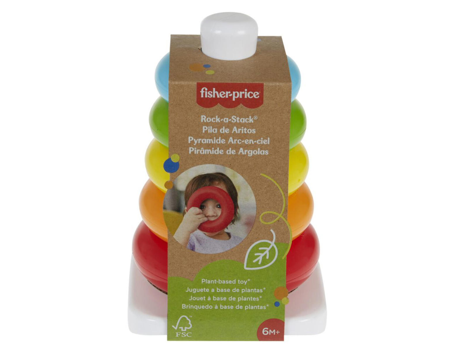 Endelig ... ringen over dem alle. Dette Fisher Price® Rock-a-Stack®-legetøj fremstillet af plantebaserede materialer* byder på klassisk stableleg til babyer. Det består af en rokkende fod og 5 farverige ringe, som de små hænder kan gribe om og stable. Når barnet stabler ringene, er det med til at udvikle hånd-øje-koordinationen, og forståelsen af relative størrelser øges, i takt med at barnet lærer at sortere og stable ringene efter størrelse. (*Lavet af minimum 90 % ætanol fra sukkerrør). Kommer i FSC-certificeret emballage. Fra 6 mdr.