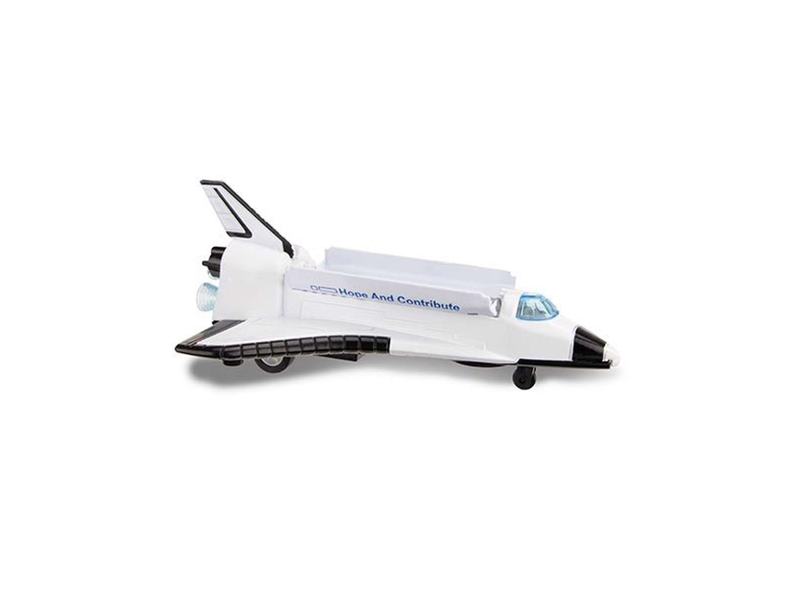 Rumfærgen er ca. 15 cm lang. Den er lavet af metal med plastikdele.