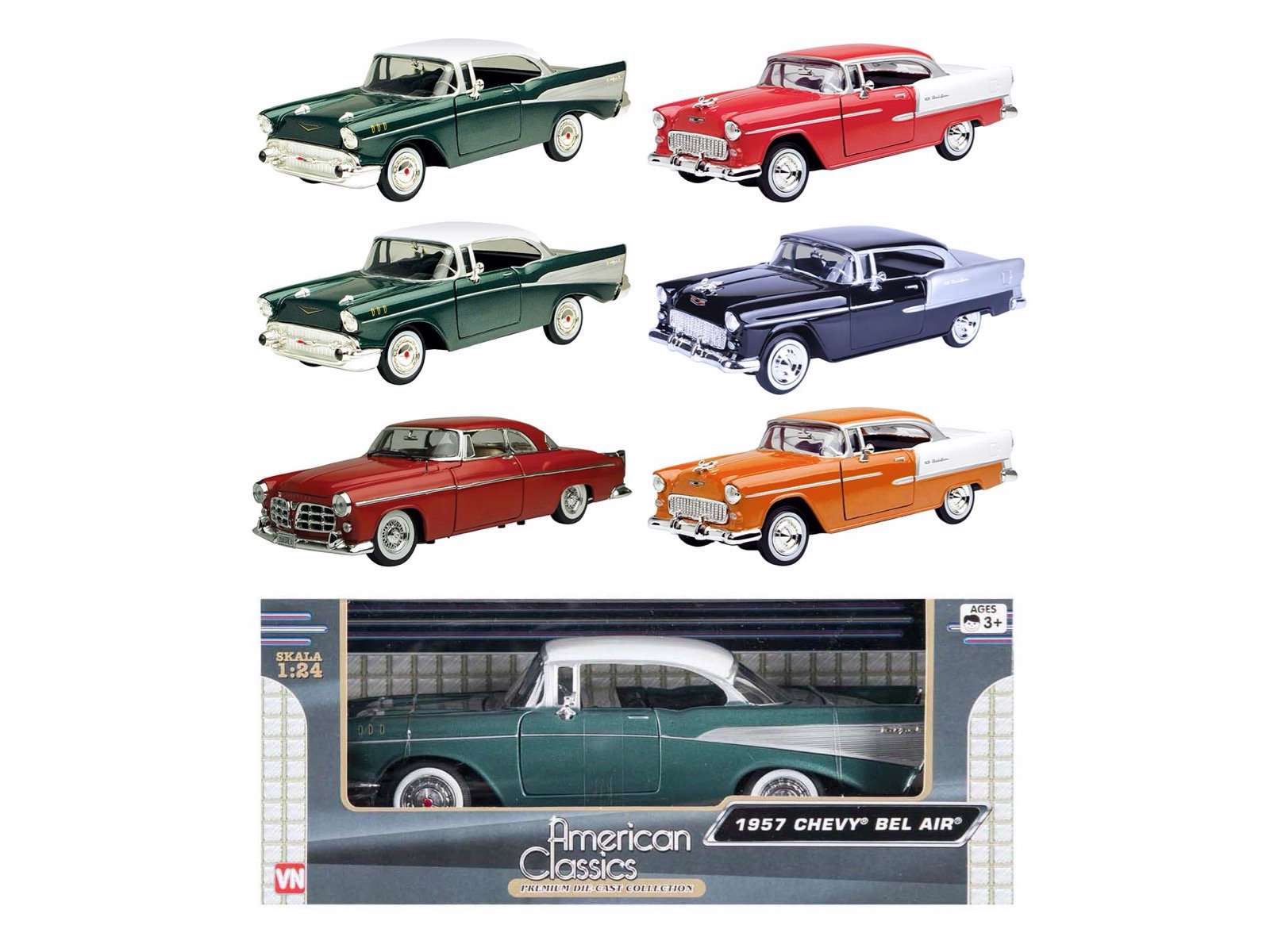 Fine modelbiler af gamle amerikanske biler. Vælg mellem Chevy Bel Air 1950/1955/1957 eller Chrysler C300 1955.