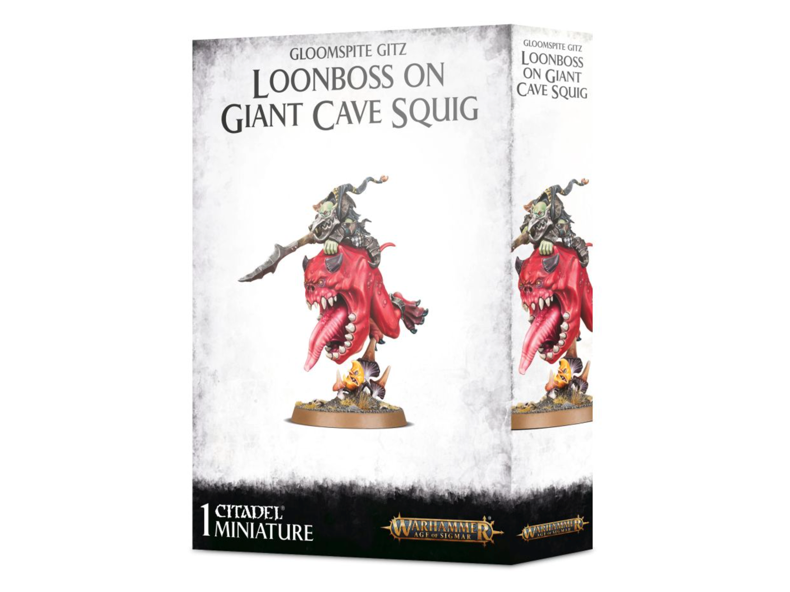 Hvis du søger efter en leder til dine Gloomspite Gitz legioner, kan du ikke gå galt i byen med Loonboss på Giant Cave Squig! Han er både en dødbringende kombattant i sin egen ret og en bragende kommandant for enhver hær, der bruger masser af Mangler Squigs, Squig Hoppers og Boingrot Bounderz. Han holder trit med resten af dine svampe-styrker og råber til dem, at de skal kæmpe endnu hurtigere. Du kan bygge din Loonboss på Giant Cave Squig med en Moonclan-stabba eller en moon-cutta, baseret på dine taktiske (eller æstetiske!) præferencer.