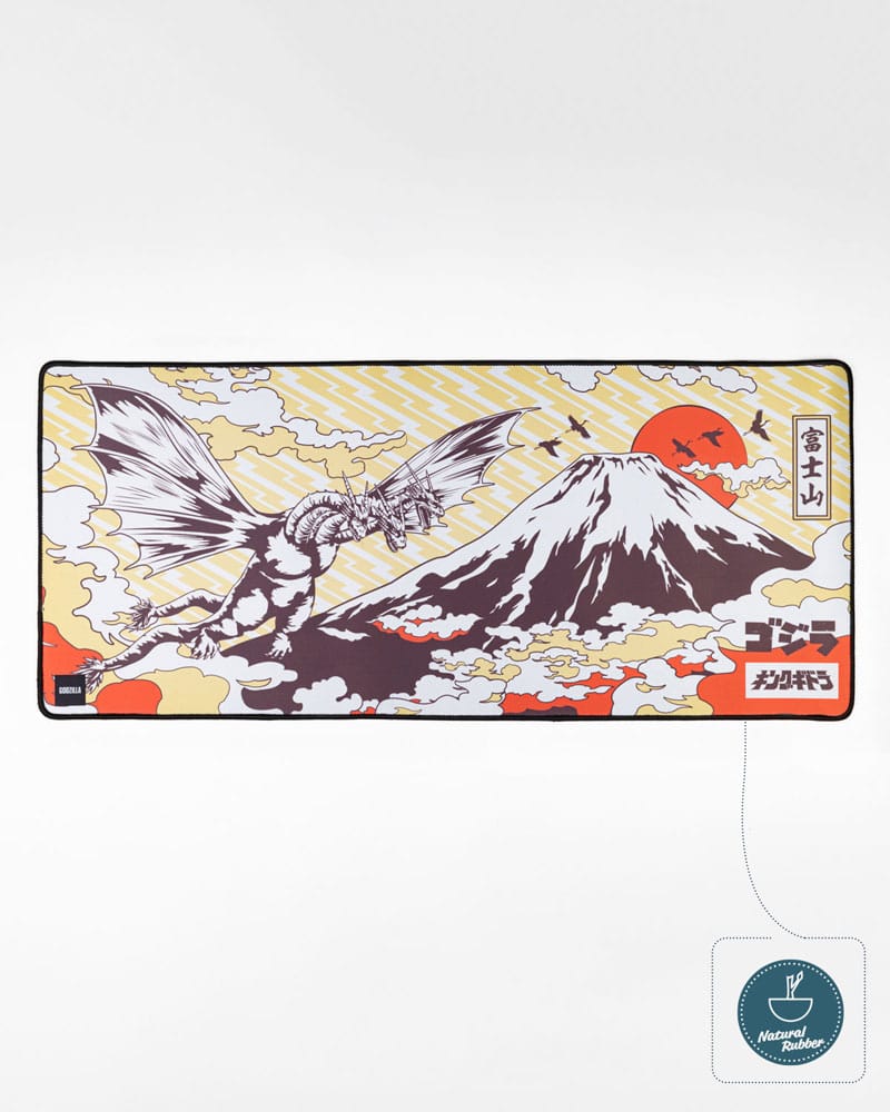 Oversize mousepad from the Japanese pop culture classic Godzilla made of durable polyester fabric with a high quality artwork printing and natural rubber on the underside. Measuring 80 x 35 cm - Natural rubber base - High precision surface - Recycled packaging printed with Environmentally friendly inks