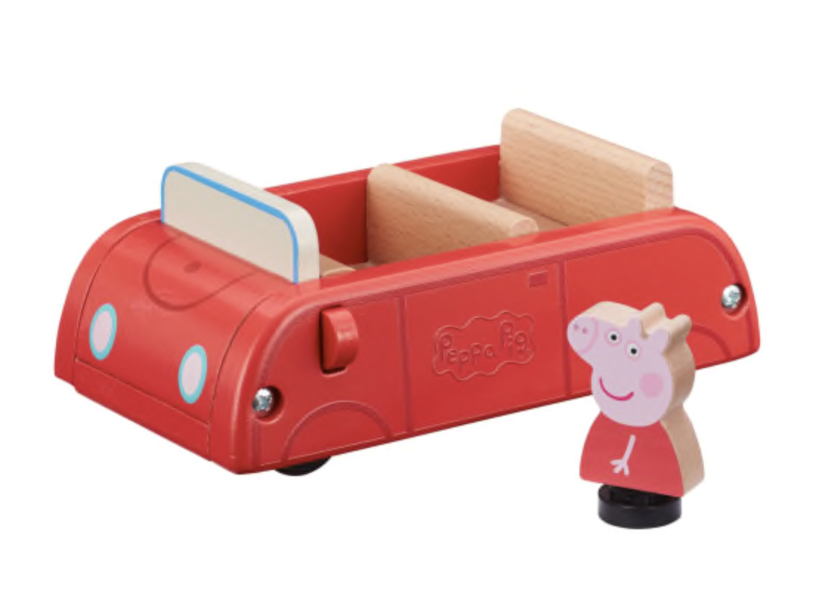 Tag plads i bilen og tag på tur med Gurli Gris, i hendes fine røde familiebil.