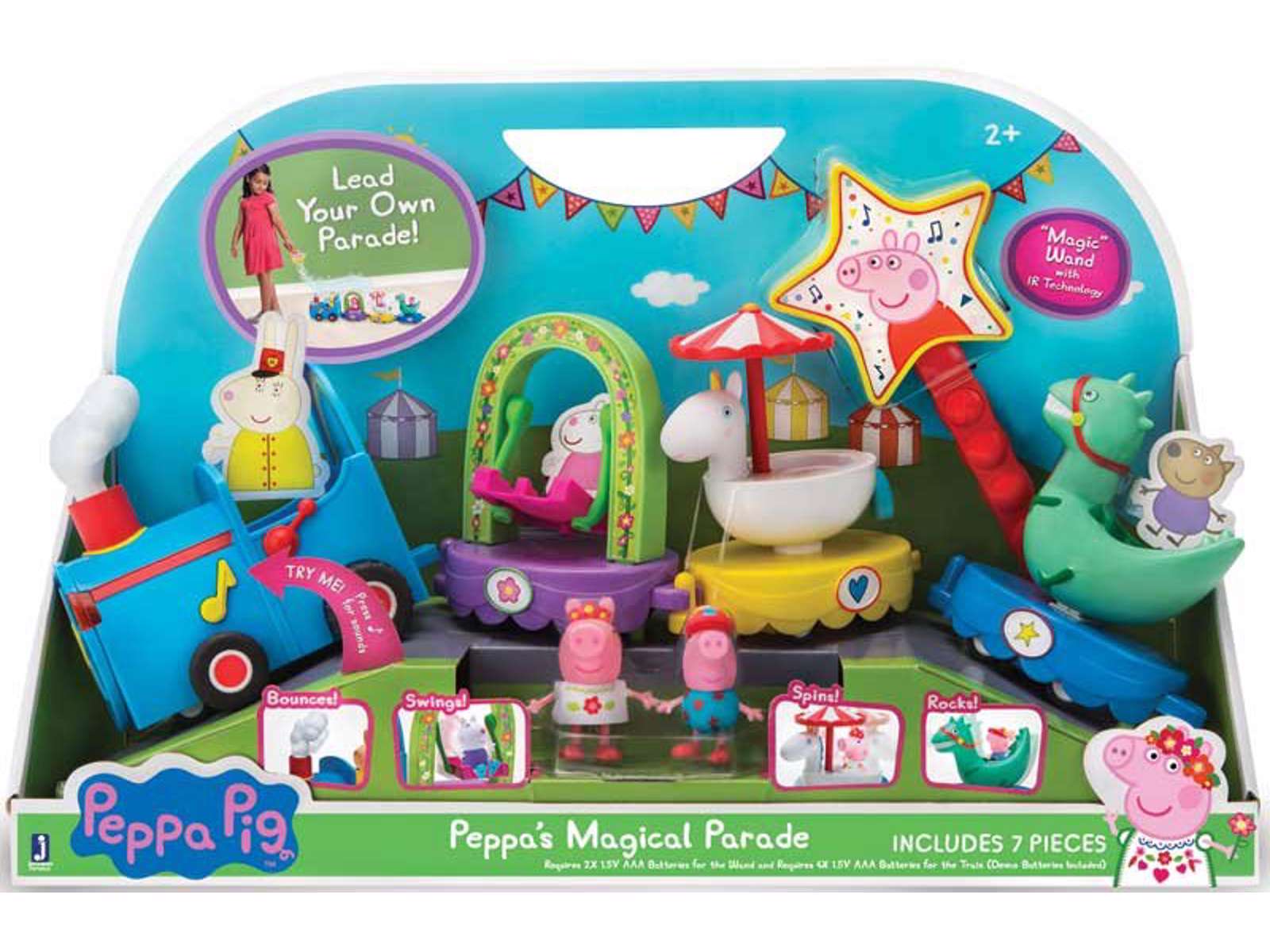 I de forskellige tog kan figurerne gynge, hoppe, rocke og spinne.