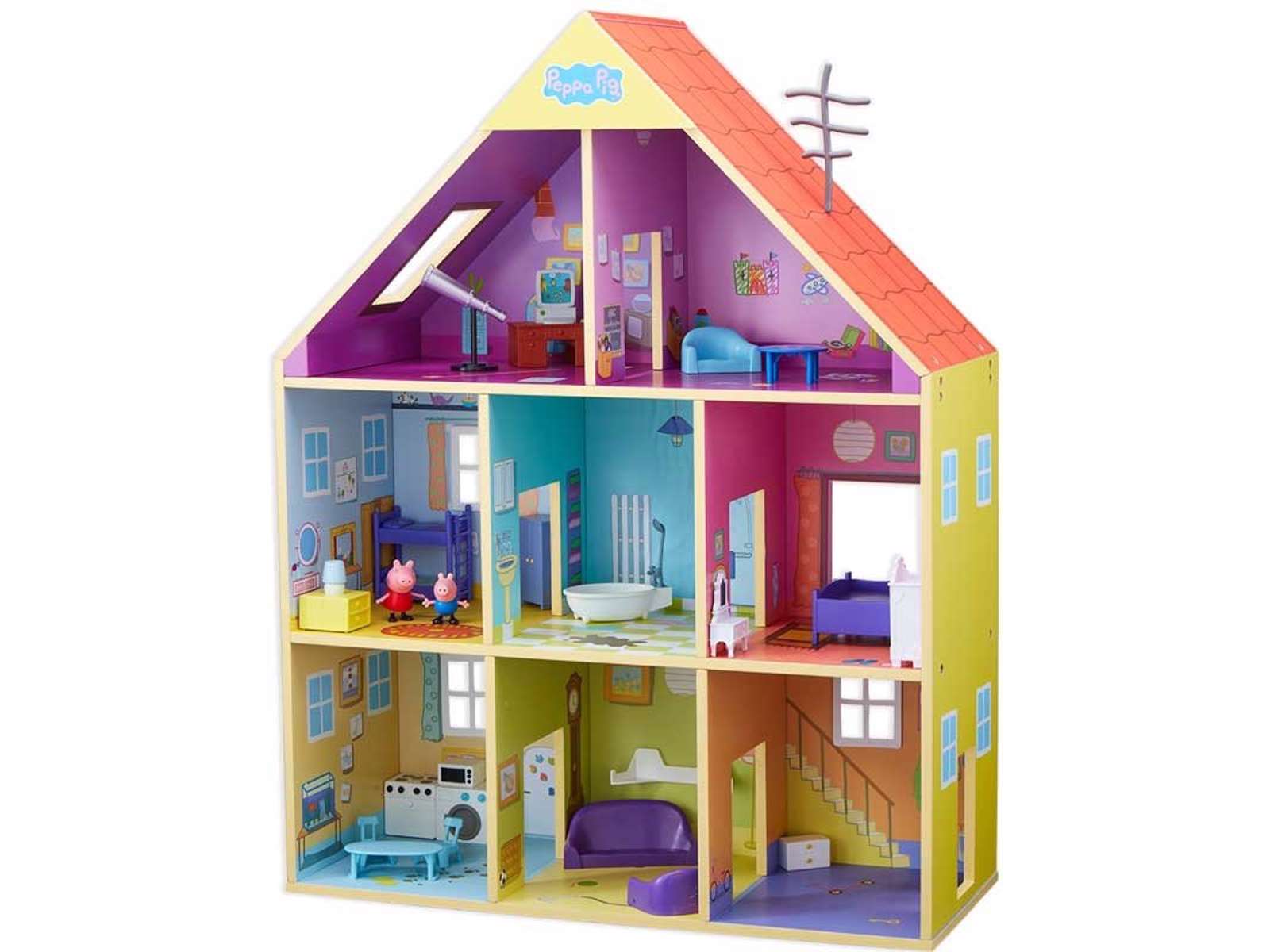 Det flotte dukkehus er 75 cm højt og 57 cm bredt. Der er masser af plads til hele familien.