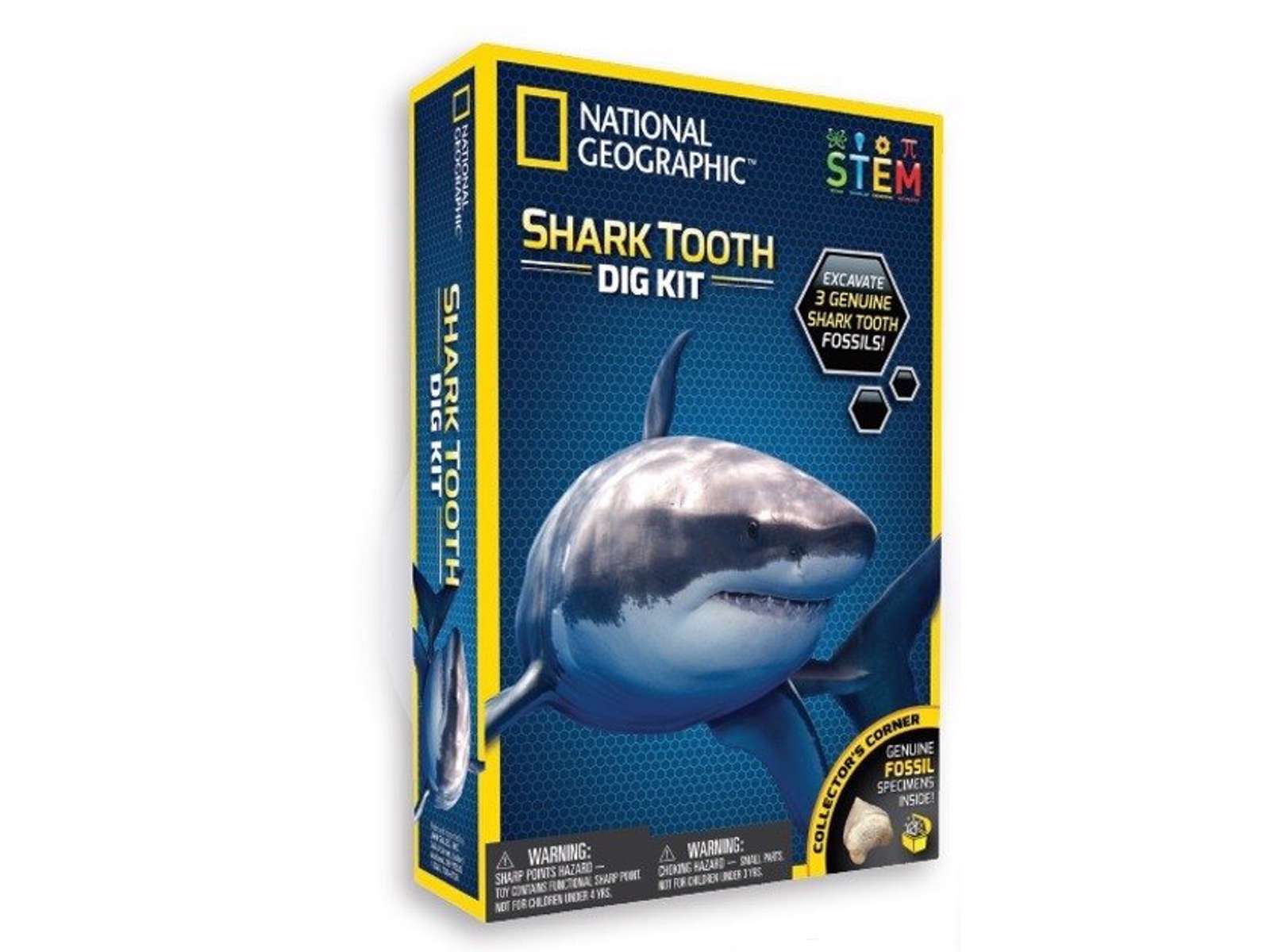 I dette udgravningssæt kan du grave 3 forskellige hajtænder ud af.