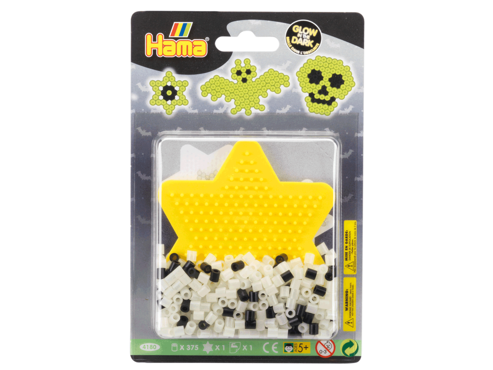 Hama Midi glow-in-the-dark-perler og stjerneperleplade – 4180