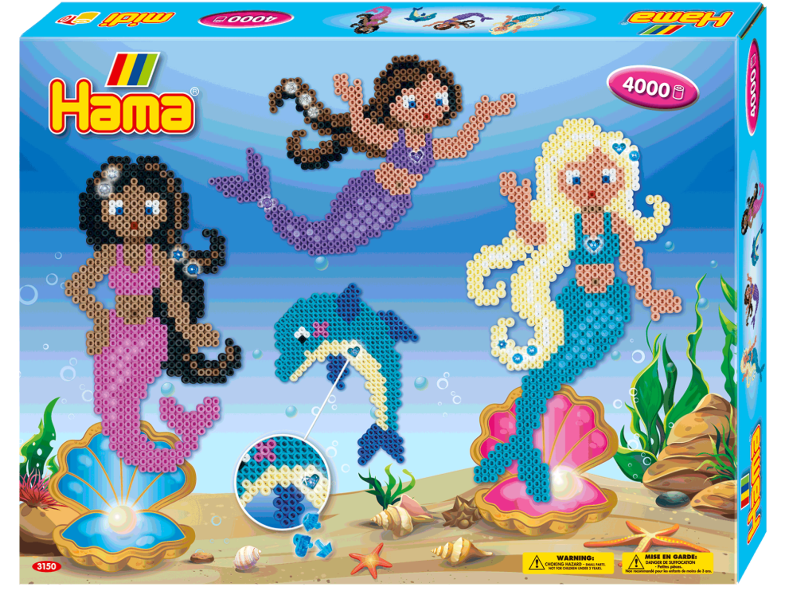 Hama Midi Havfrue gaveæske – 3150 Stort gavesæt med havfruetema. Indeholder 4.000 Midi-perler, to stiftplader, funklende sten m.m. Anbefales fra 5 år.