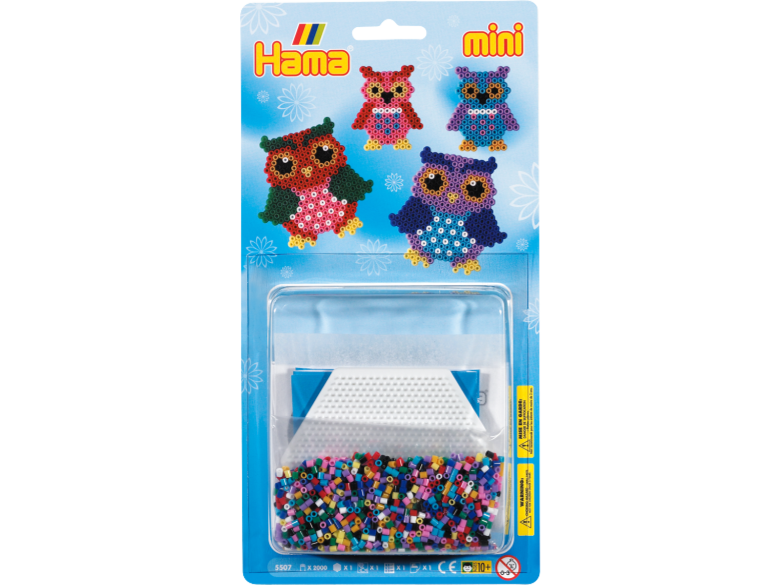 Hama Mini Perler stiftplade + perler med ugler 5507