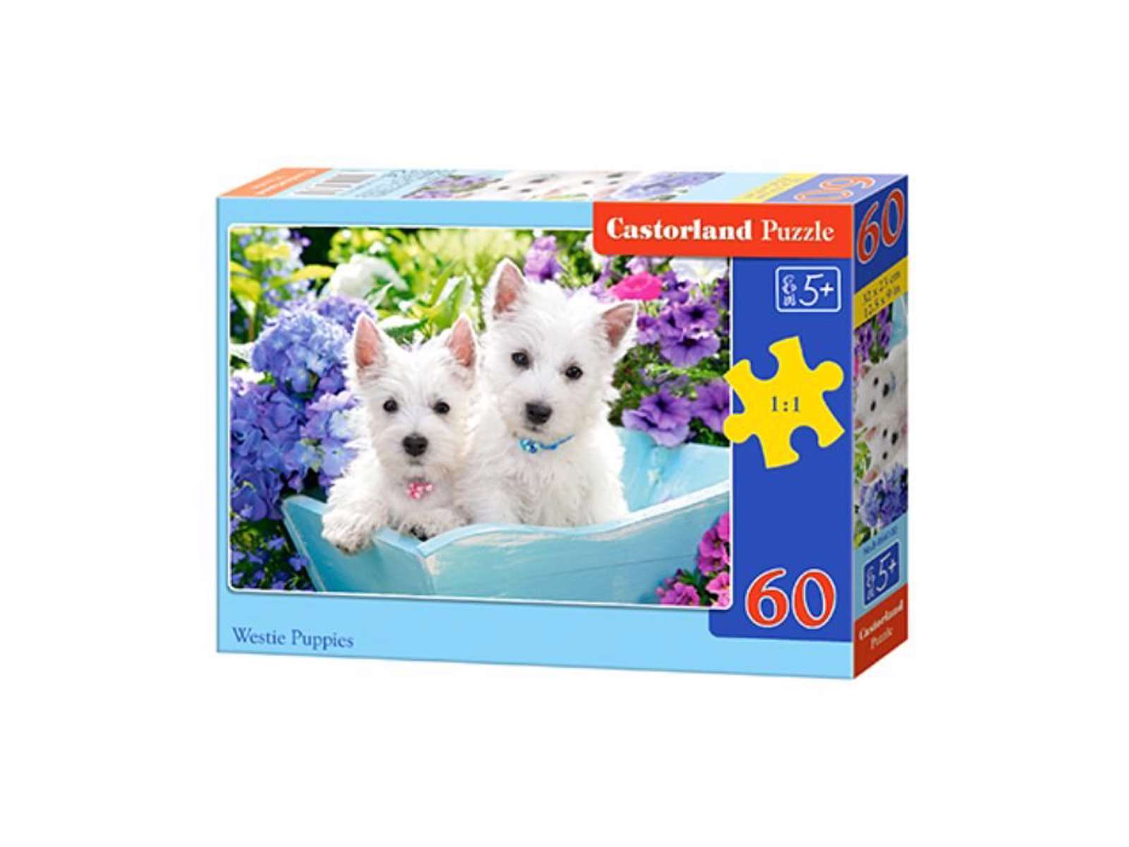 Hundehvalpe i kurv puslespil med 60 brikker fra Castorland