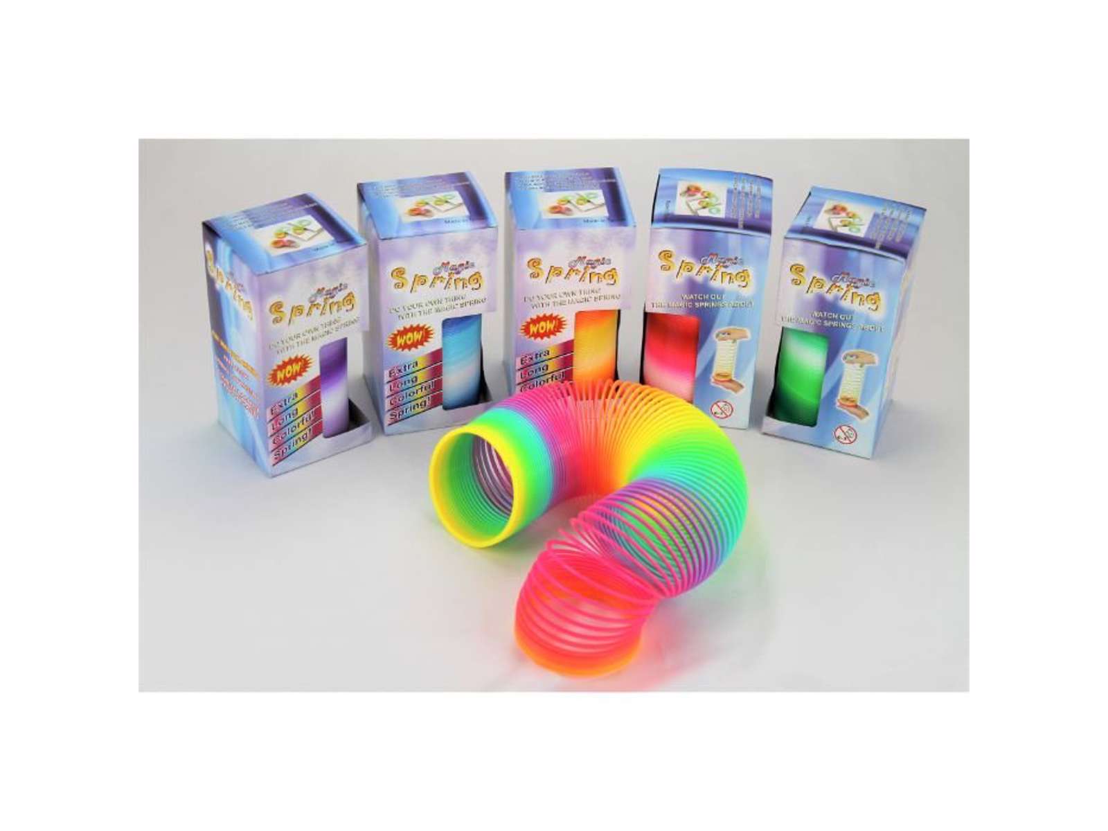 Den magiske fjeder er lavet af plastic i flotte farver.