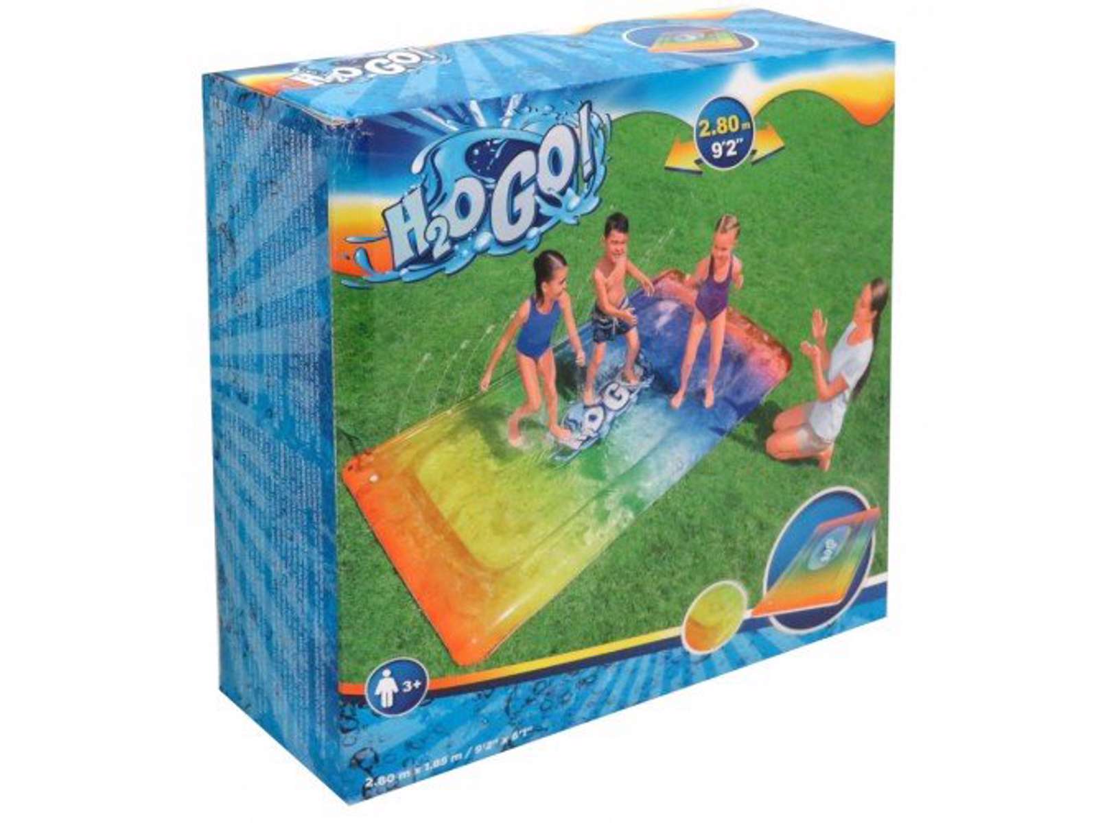 Kalder alle vandglade børn - her er årets sjoveste vandmåtte til haven. Denne legemåtte fra Bestway H2Ogo har indbyggede sprinklere, som sprøjter vand op fra måtten. Vandet samles i midten af måtten, så børnenes fødder bliver afkølet ved leg på måtten.  Det eneste der skal til for at opsætte og tilslutte vandmåtten er en vandslange. Måtten har en ventil i bunden, som gør den let at tømme. Størrelse:  2,8 x 1,85 m. I pakken medfølger et praktisk lappesæt, i tilfælde af at den skulle punktere. Anbefalet alder fra 3 år