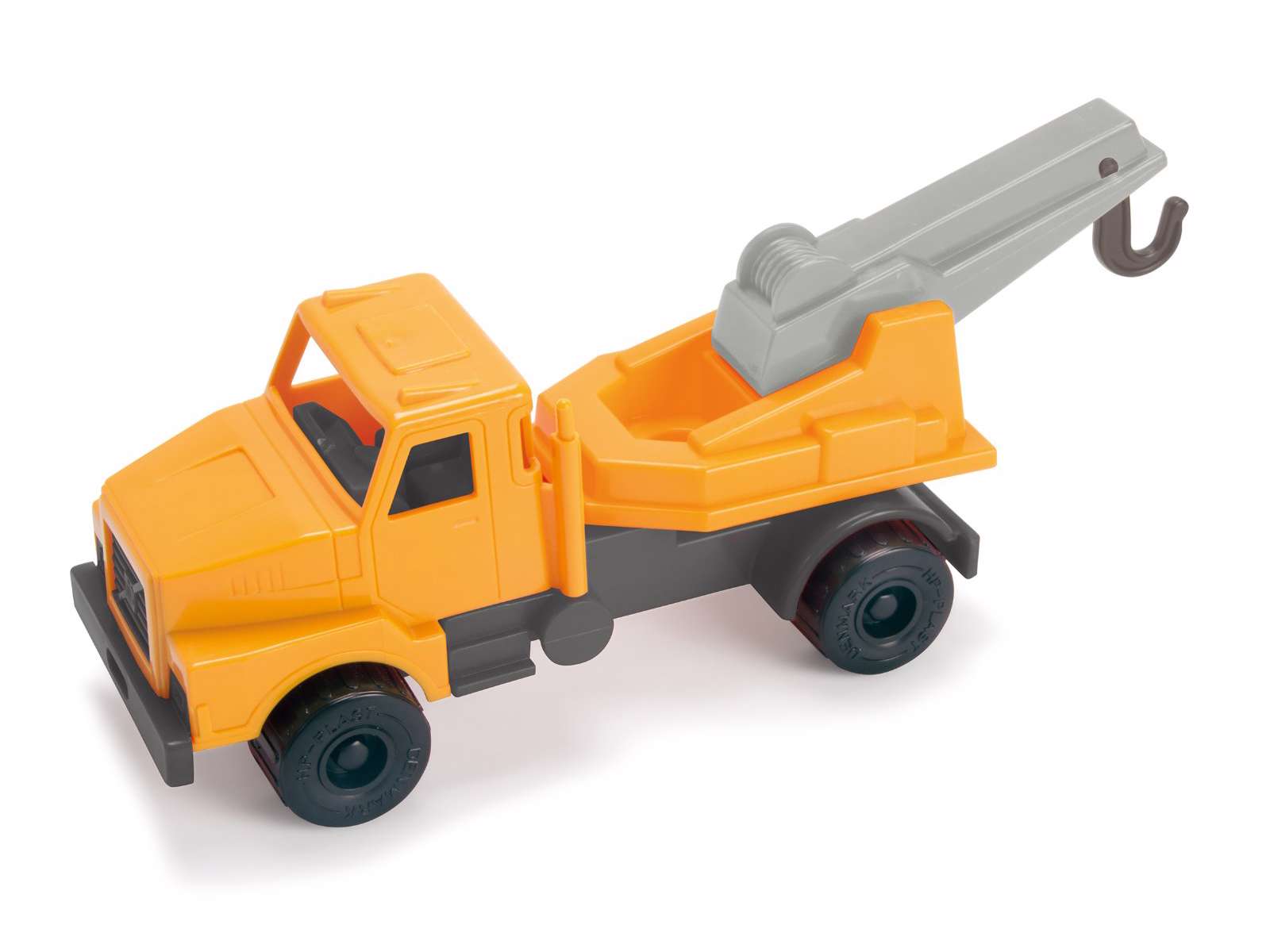 Kranvognen er 18 cm lang, med bevægelige hjul og kran. Dantoy er kendt for deres kvalitets udendørs legetøj. Alle Dantoys produkter er lavet i massiv plast. Deres produkter er kendt fra alle institutioner og skoler, bl.a. skovle, spande, forme og alle deres andre lækre ting.