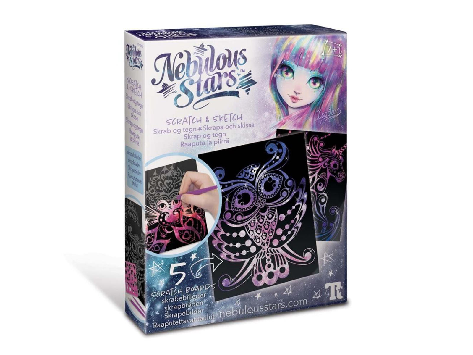 Oplev en farverig galakse med masser af stjerner under hver af disse 5 skrabeplader. Stencils og skraberedskaber medfølger. Fra 7 år.