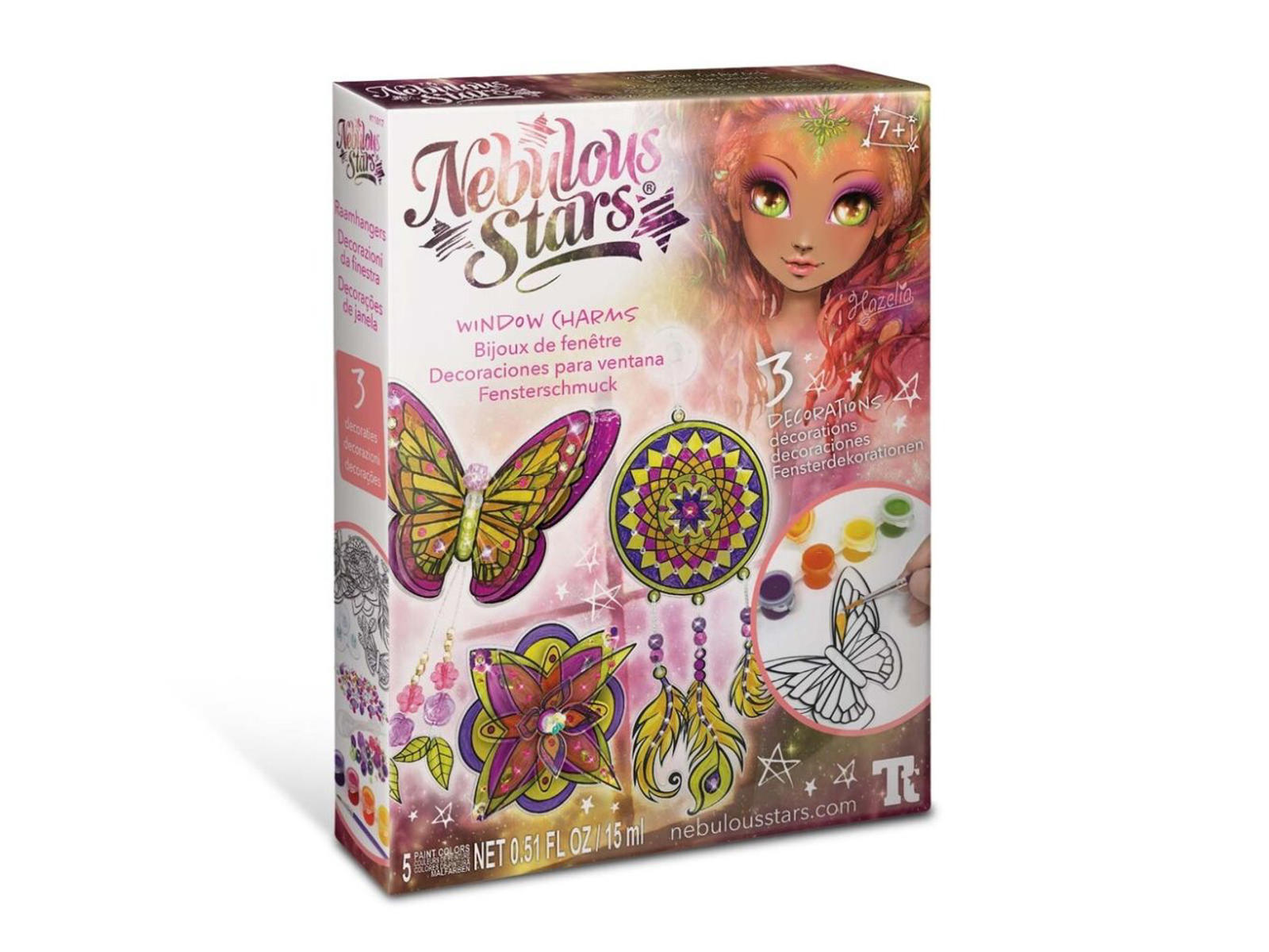 Skab 3 magiske vinduesudsmykninger. Mal de færdigskårne dele, tilføj rhinsten for at udsmykke dem og tilføj så en sugekop med snor og perler. Fra 7 år.